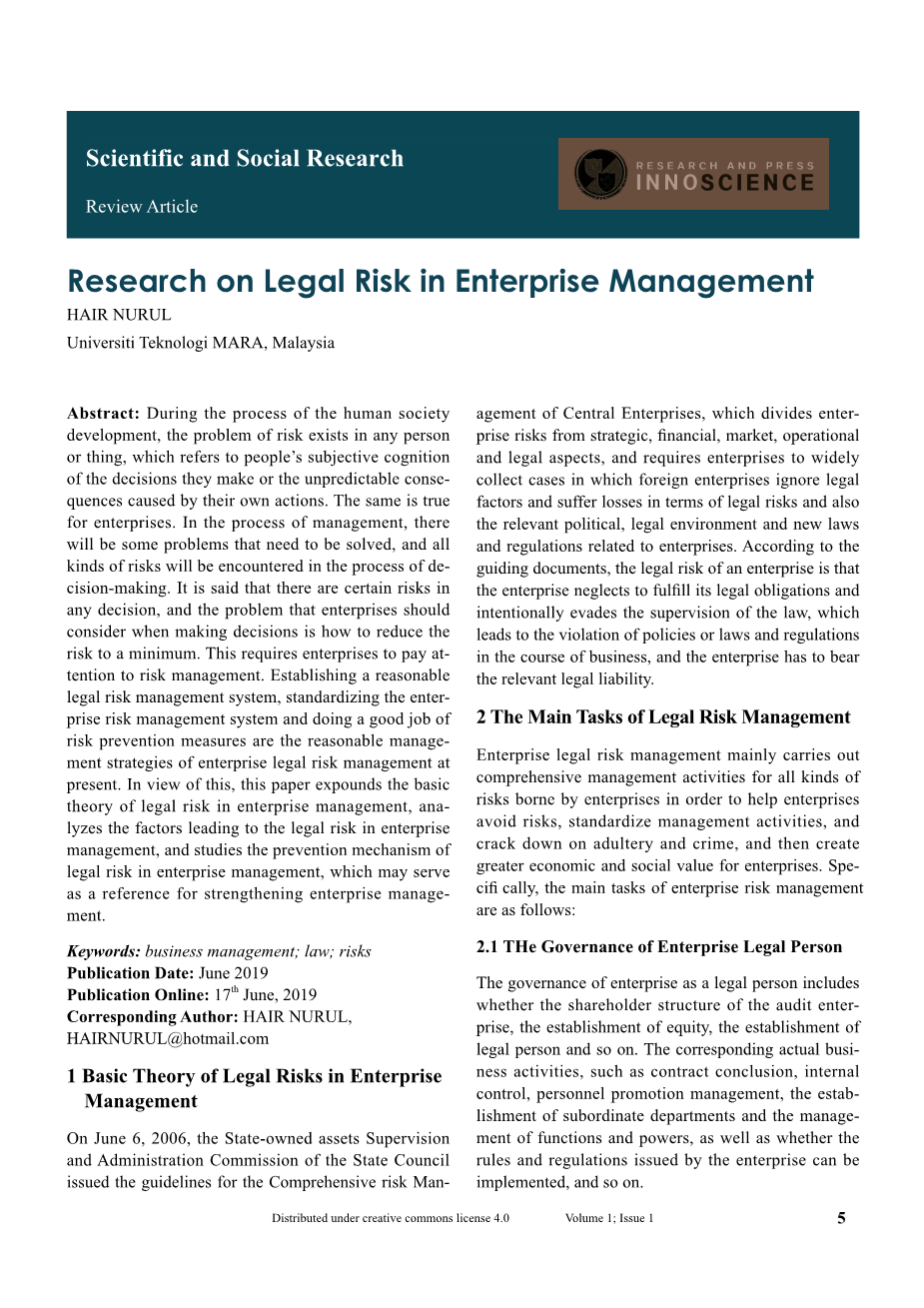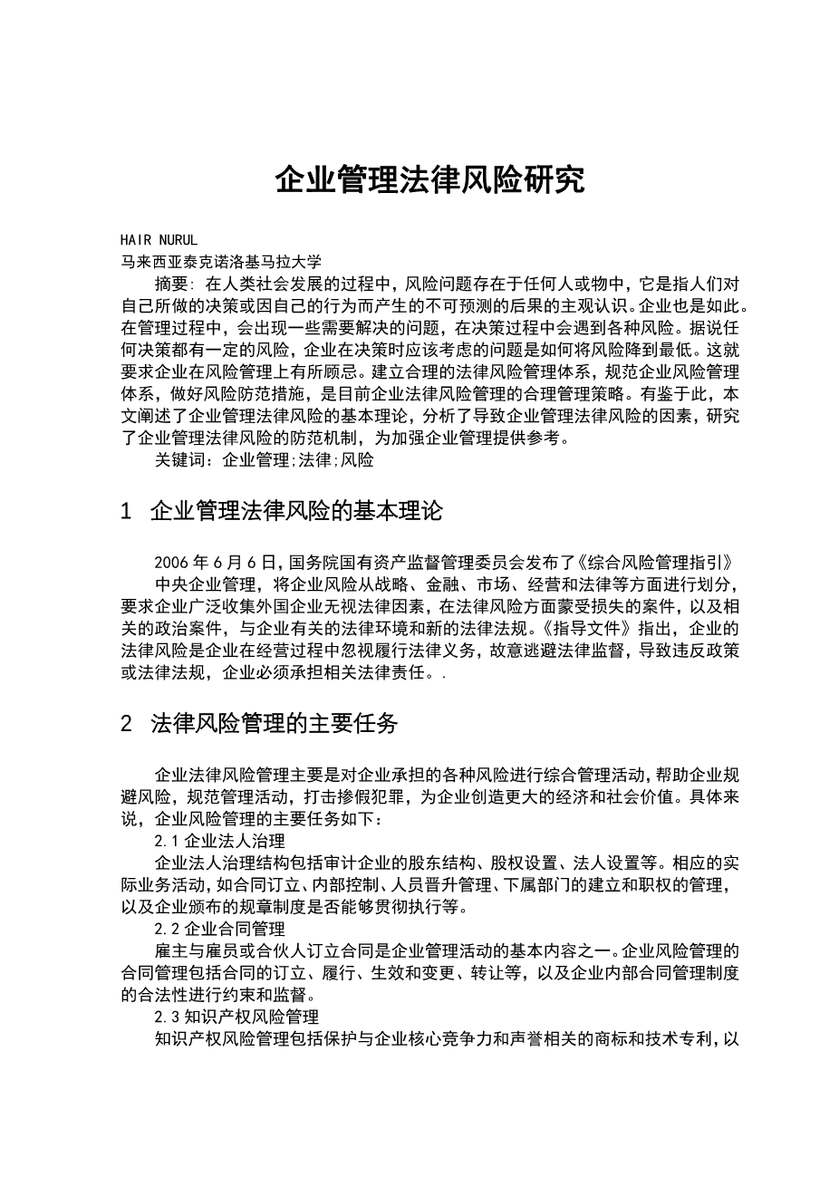 企业管理法律风险研究外文翻译资料