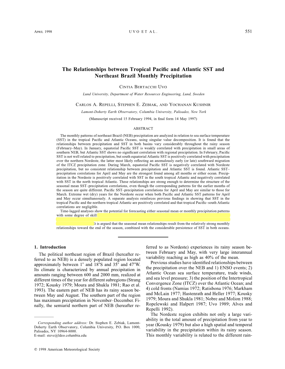 CINTIA BERTACCHI UVO,CARLOS A. REPELLI, STEPHEN E. ZEBIAK, YOCHANAN KUSHNIR
