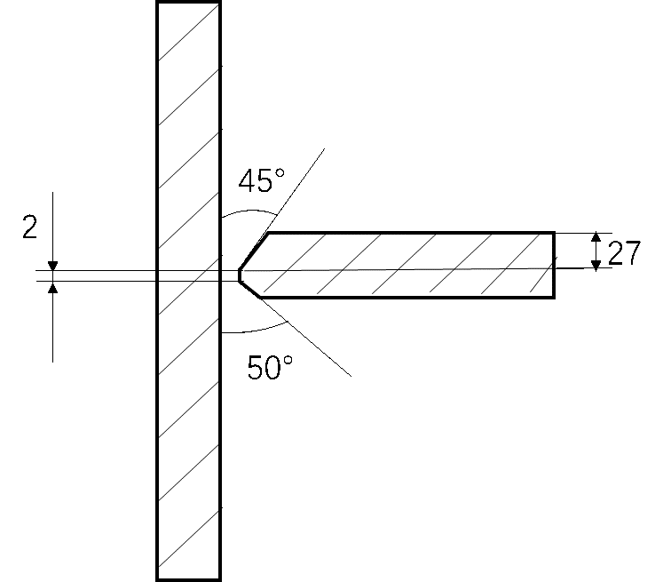 1、本课题采用数值模拟的方法研究外侧排架接管与筒体焊接时残余应力的大小及分布,所采用材料为Q345R,板厚40mm。此结构采用对接形式,开不对称K型坡口,坡口的形状及尺寸示意如图1。本课题采用的焊接方法为MAG焊,焊缝共有14层焊道,焊接顺序为先完成外表面坡口的焊接,然后再