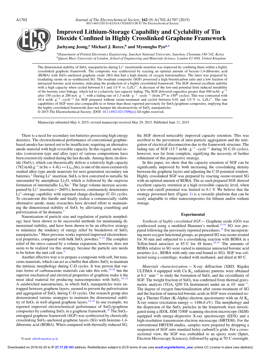 高度交联石墨烯框架结构内提高二氧化锡储锂性能和循环性外文翻译资料