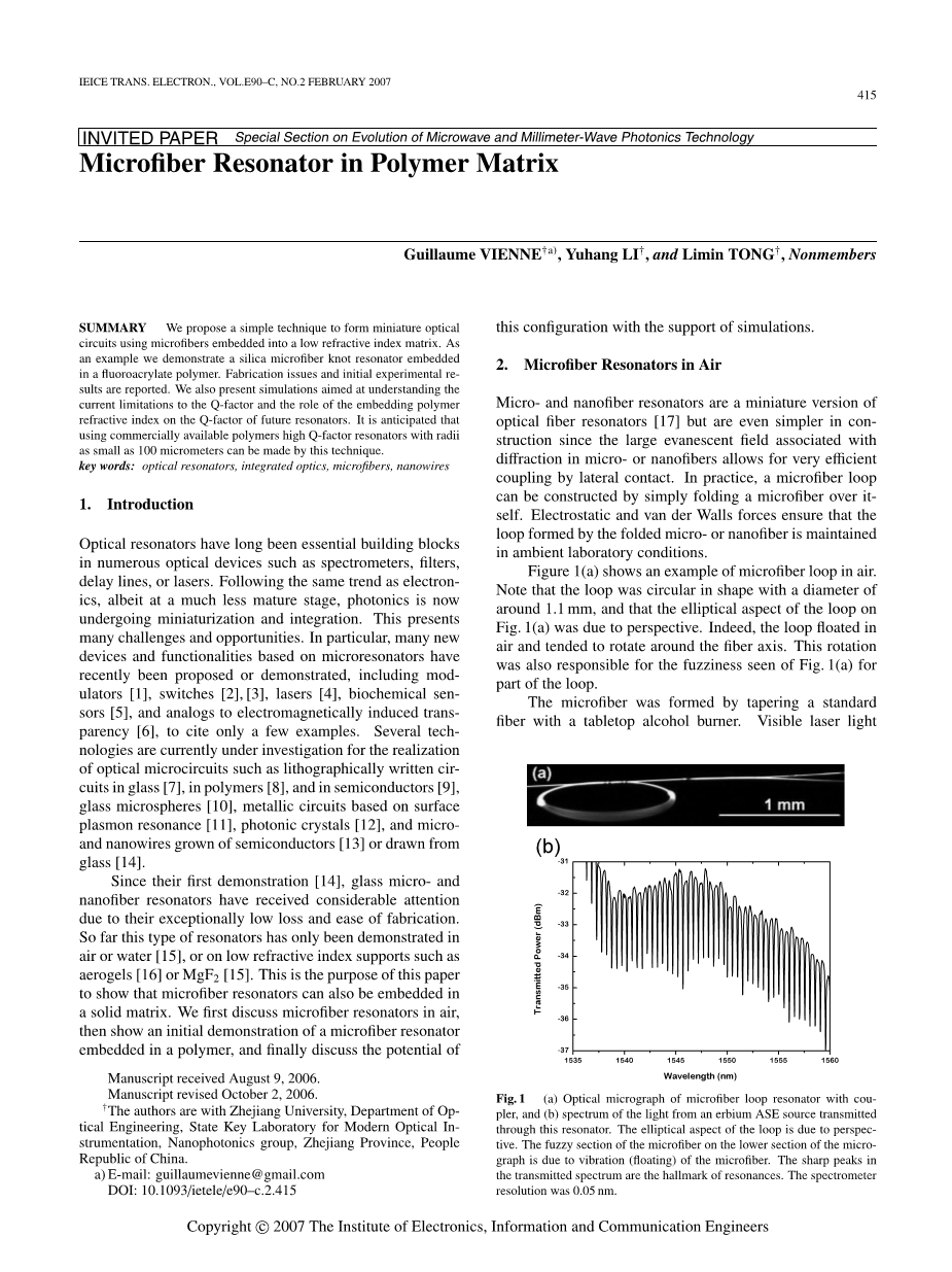 关键词:光谐振器 集成光路 微米光纤 纳米线