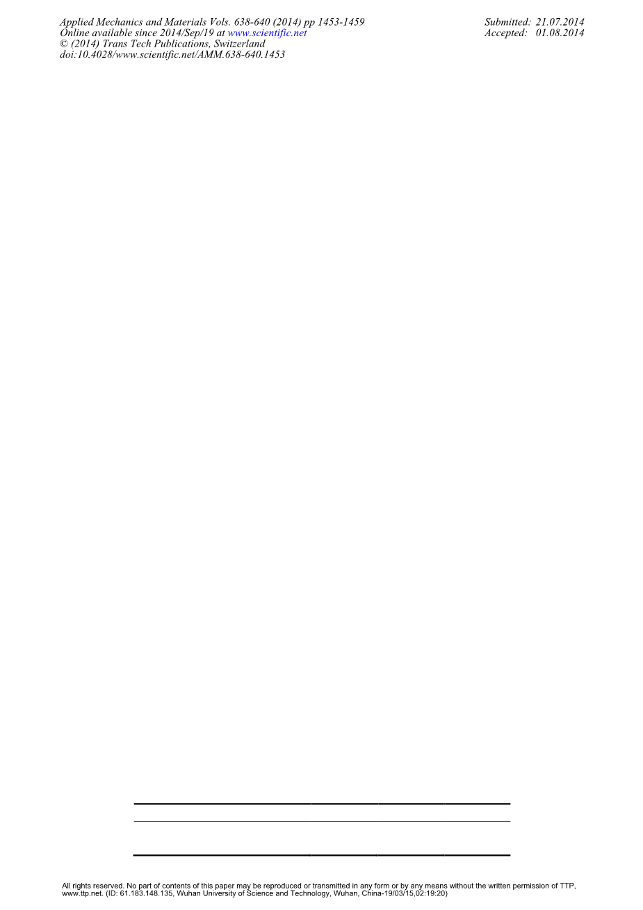应用力学和材料卷。(2014)638-640 PP 1453-1459 提交: 2014.07.21