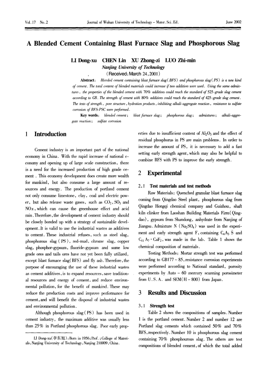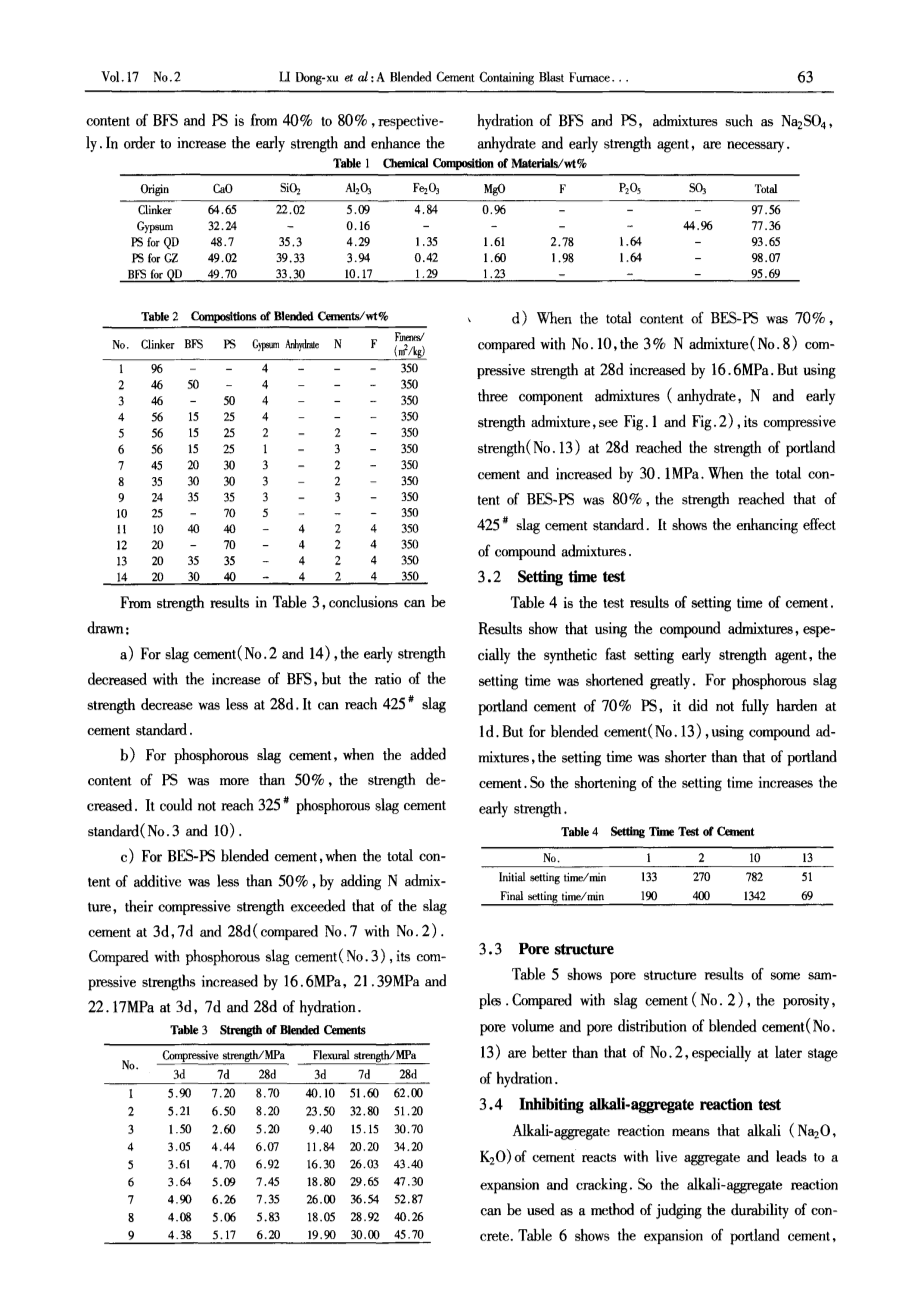 1 Li Dongxu. Study on High Content Blast Furnace Slag and~or