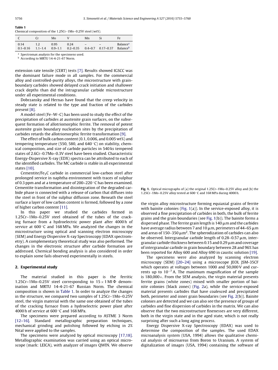 在本文中,我们研究了在从600℃,168MPa环境下服役了4000h的水厂发电炉中获得的开裂管1.25Cr–1Mo–0.25V钢所形成的碳化物。我们通过使用光学和扫描电子显微镜(SEM)和能量色散X射线光谱(EDX光谱法)分析了显微组织的变化,同时还进行了一个互补理论的研究。也发表了碳化物形成后电子结构的变化。化学键合分析也是为了考虑解释一些观察到的失败的实验。