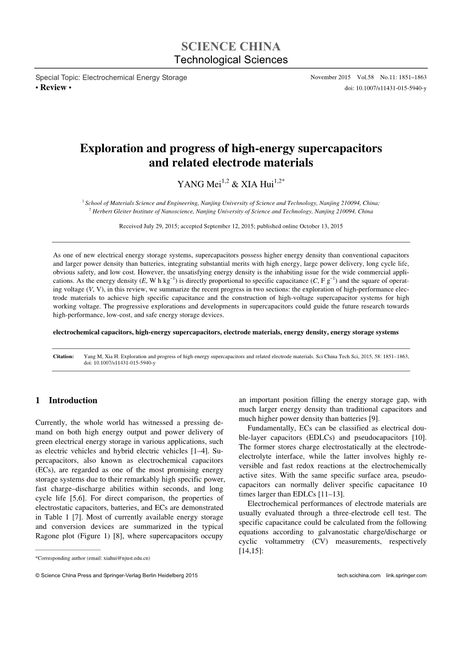 关键词:电化学电容器 高能超级电容器 电极材料 能量密度 储能系统