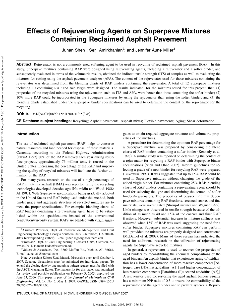 再生剂对添加RAP的Superpave混合料性能的影响外文翻译资料