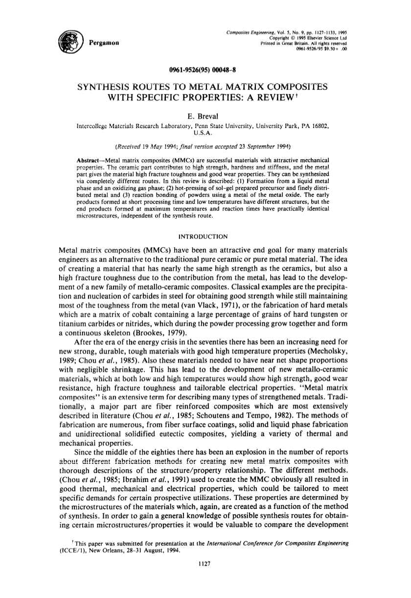 具有特殊性能的金属基复合材料的合成路线:综述外文翻译资料