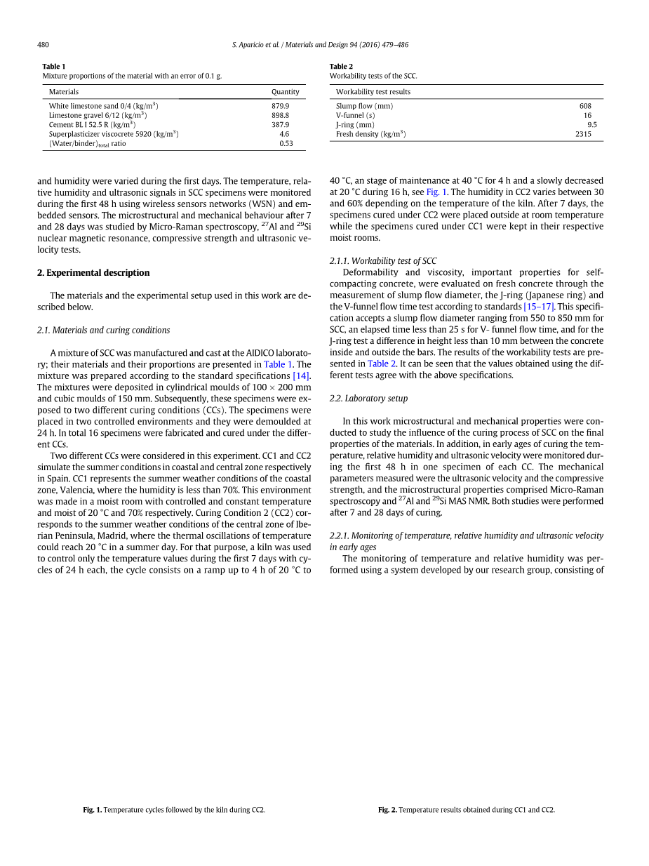 本文通过比较不同的微观结构和力学性能,来研究温度和湿度对自密实混凝土最终性能的影响,因为没有研究涉及的具体的微观结构,其机械性能有在文献中被发现。通过模拟在西班牙沿海和中部地区的夏季情况两种硬化条件。在这些养护条件下,第一天改变环境的温度和湿度。自密实混凝土试样在第一个48小时期间的温度、相对湿度、和超声波信号用无线传感器网络和嵌入式传感器进行检测。7天和28天之后的微观结构和机械性能通过微拉曼光谱、27Al和29Si核磁共振、抗压强度和超声速实验来研究。