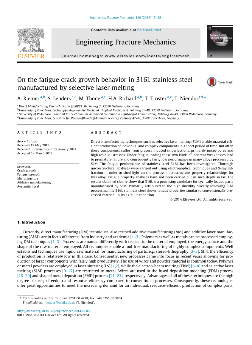A. Riemer a,b, S. Leuders a,c, M. Thouml;ne a,c, H.A. Richard a,b, T. Trouml;ster a,c, T. Niendorf d,*