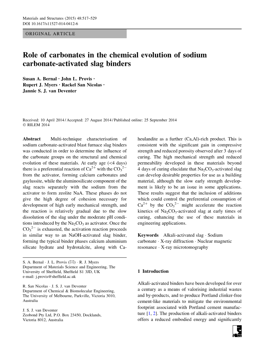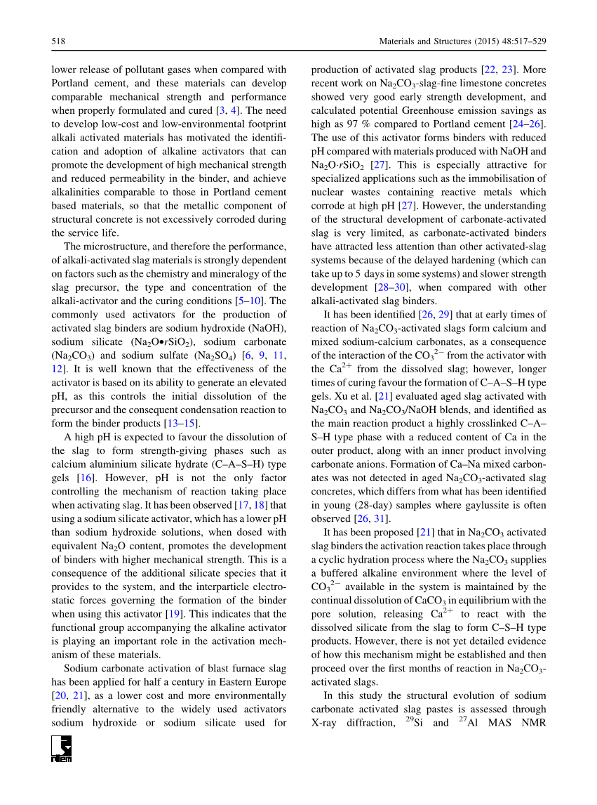 碳酸盐在碳酸盐活化矿渣粘合剂中的化学演化作用外文翻译资料