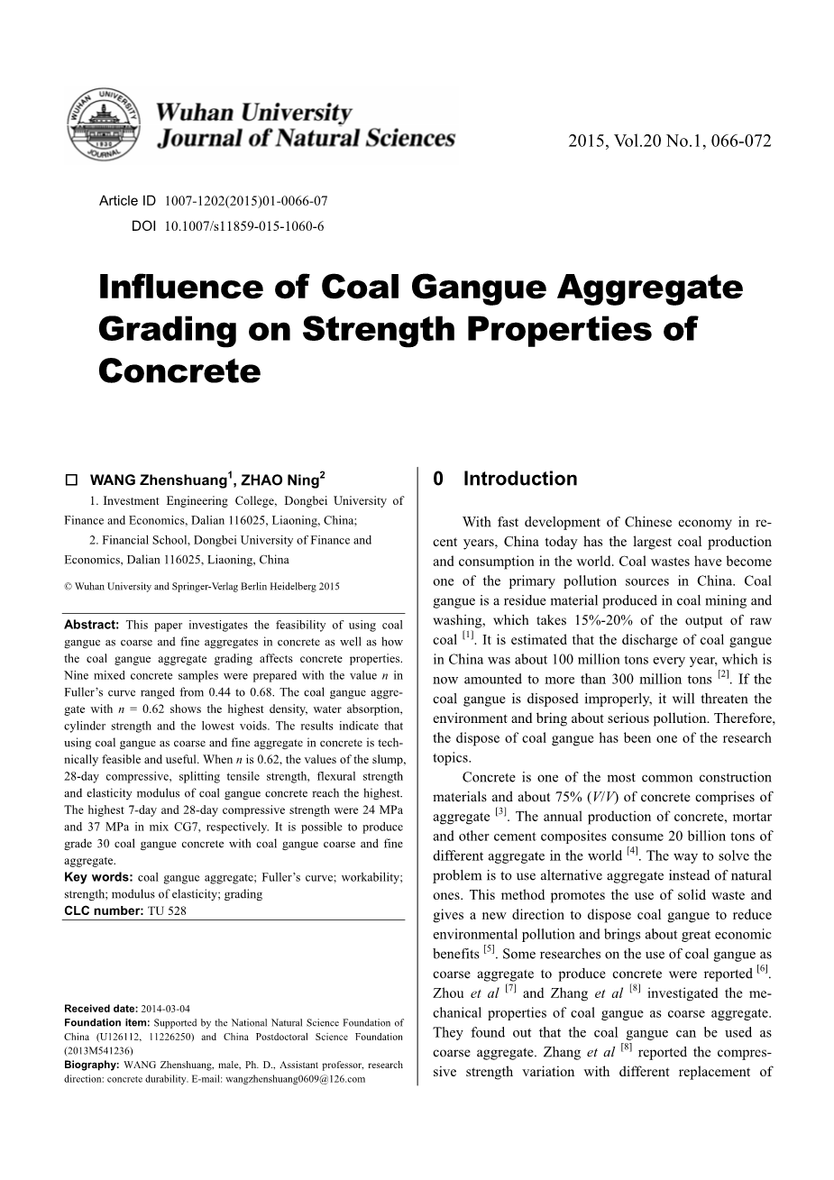 [ 3 ]Wang Z S, Wang L J, Hu H L, 等.基于功效系数法优化粗集料含量。武汉理工大学材料科学杂志,2011,26(2):330-335.