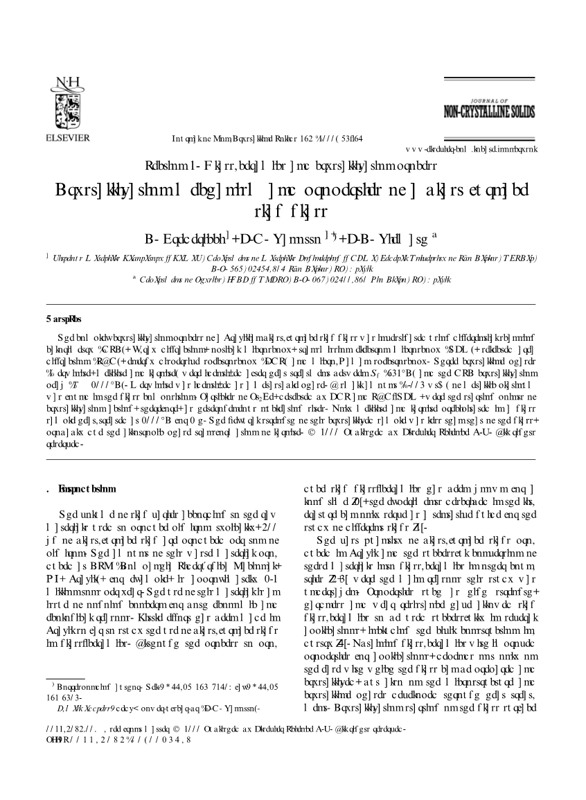 巴西高炉渣玻璃的复杂的结晶过程可以利用微分扫描量热法(DSC),X射线衍射仪衍射,光学显微镜、透射电镜显微镜(TEM)、选区地反应(SAD)、能谱(EDS)和显微拉曼光谱研究。在TG(742℃)和DSC结晶峰(T=1000℃)温度之间的热处理后,发现了三个晶相(蔷薇辉石,长石和硅灰石),其中镁蔷薇辉石是亚稳相,在玻璃组合物中还发现了少量(质量分数为0.004%)的金属铂。EDS、SAD和TEM检测到的颗粒状Pt3Fe是结晶的起始点,因此,是非均质形核。在玻璃样品中只有黄长石和硅灰石参与1000℃下1小时的热处理。可能是由于硅灰石的同素异形体的相变,这种晶化样品的弯曲强度低于玻璃。Elsevier科学有限公司2000年出版,版权保留。