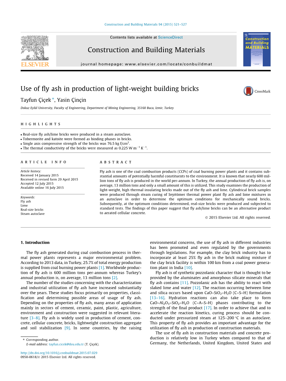 利用粉煤灰制备建筑轻质砖外文翻译资料