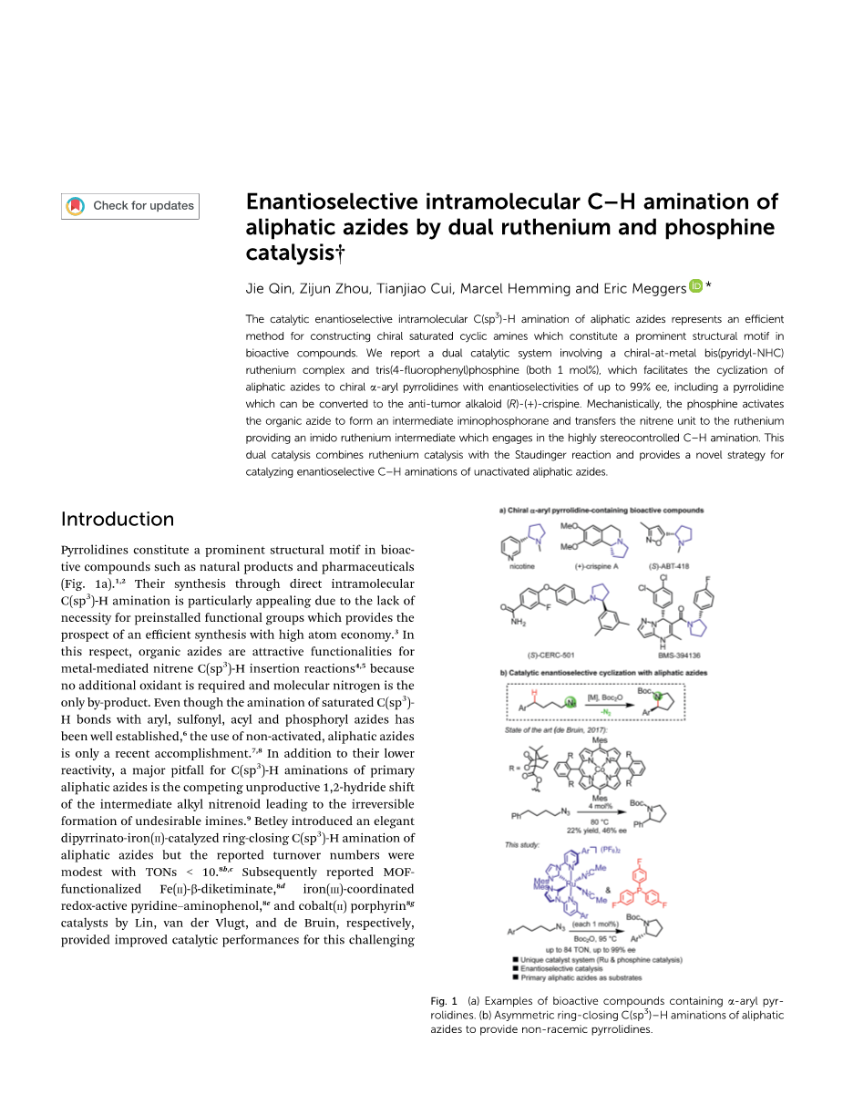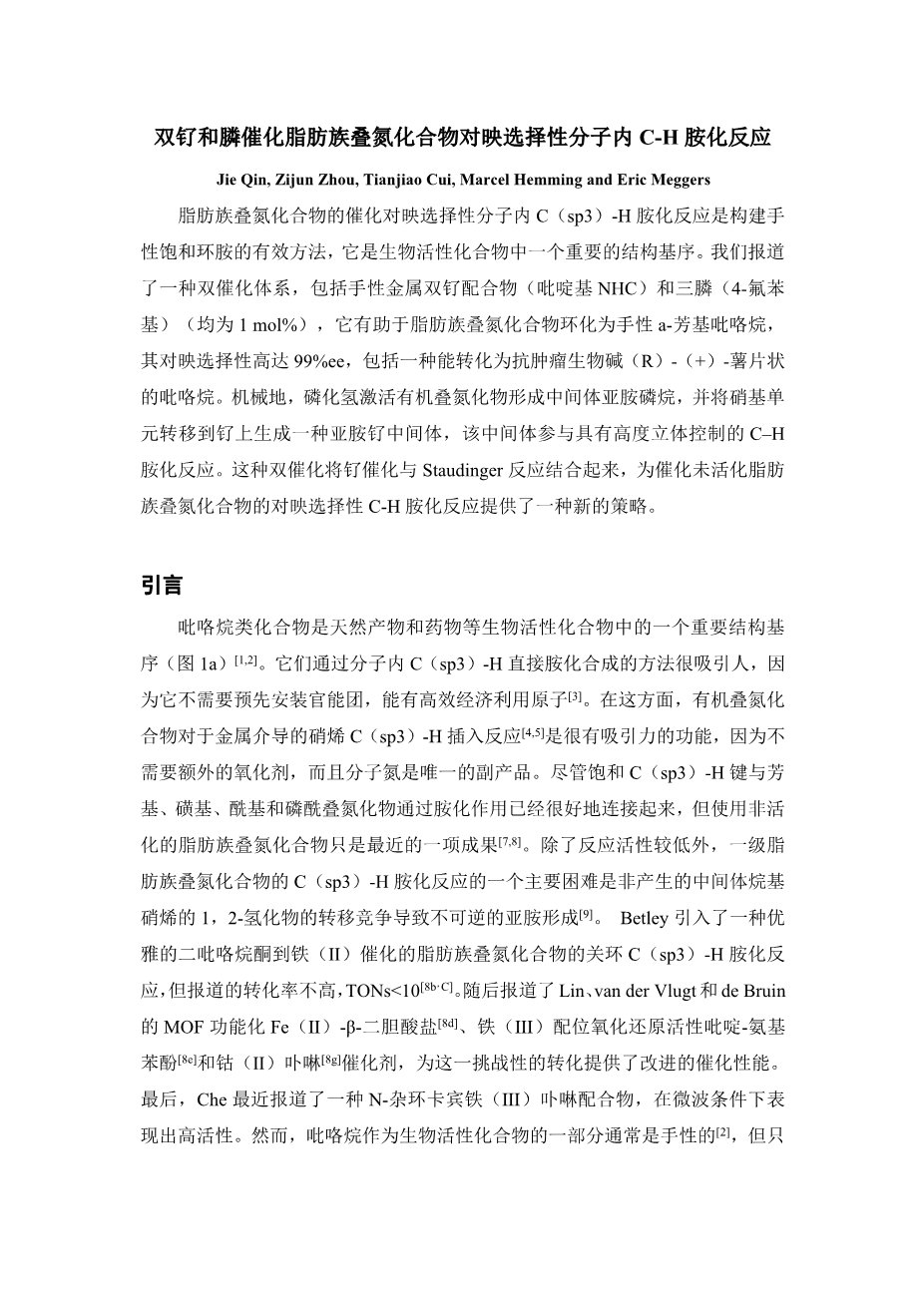 双钉和膦催化脂肪族叠氮化合物对映选择性分子内C-H胺化反应外文翻译资料