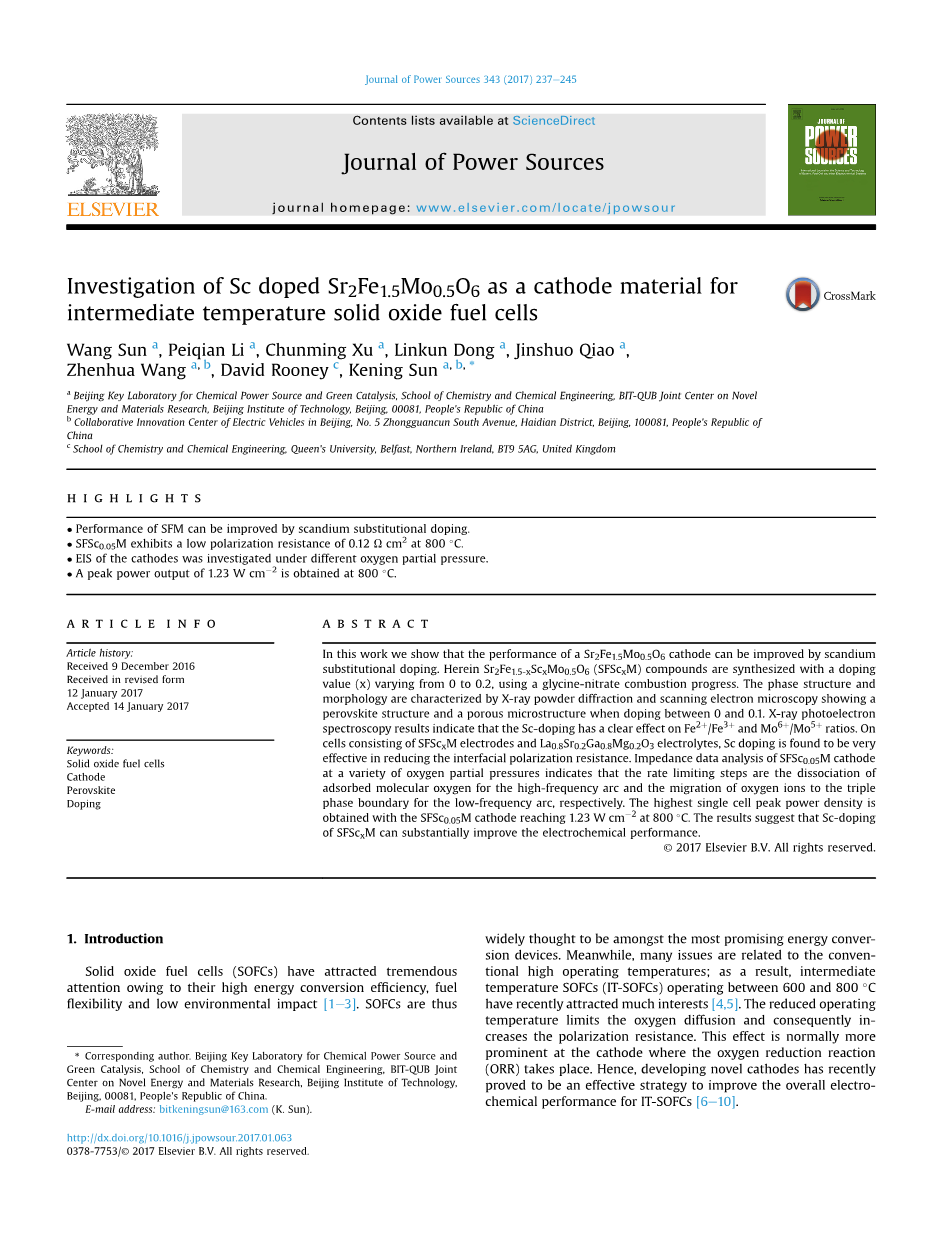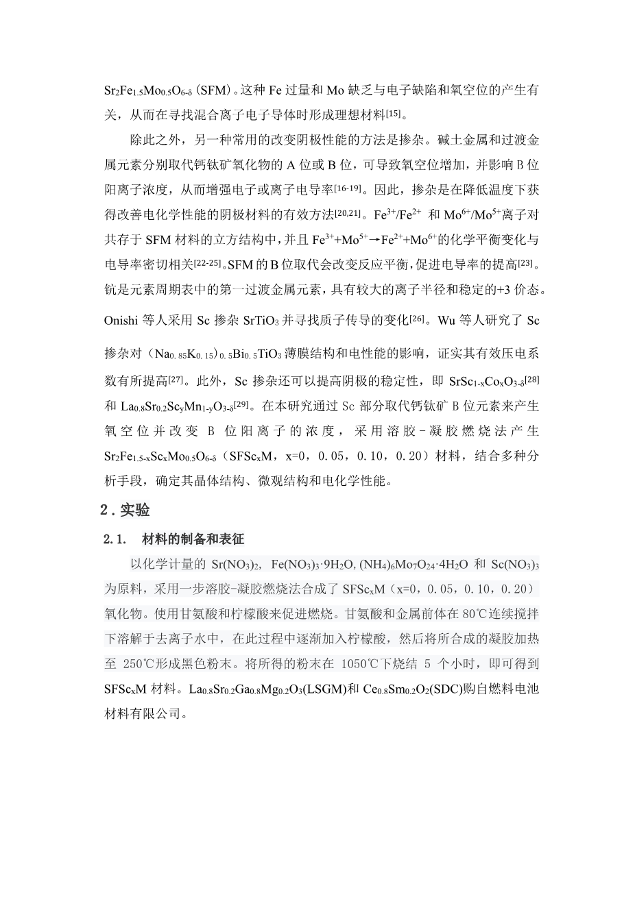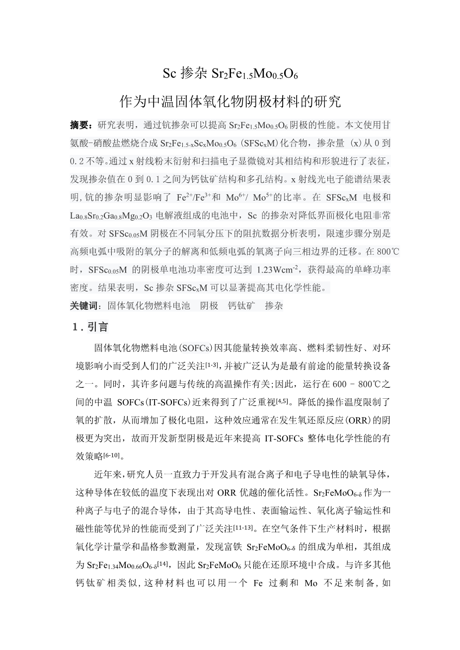 Sc掺杂Sr2Fe1.sMoo.5O6 作为中温固体氧化物阴极材料的研究外文翻译资料