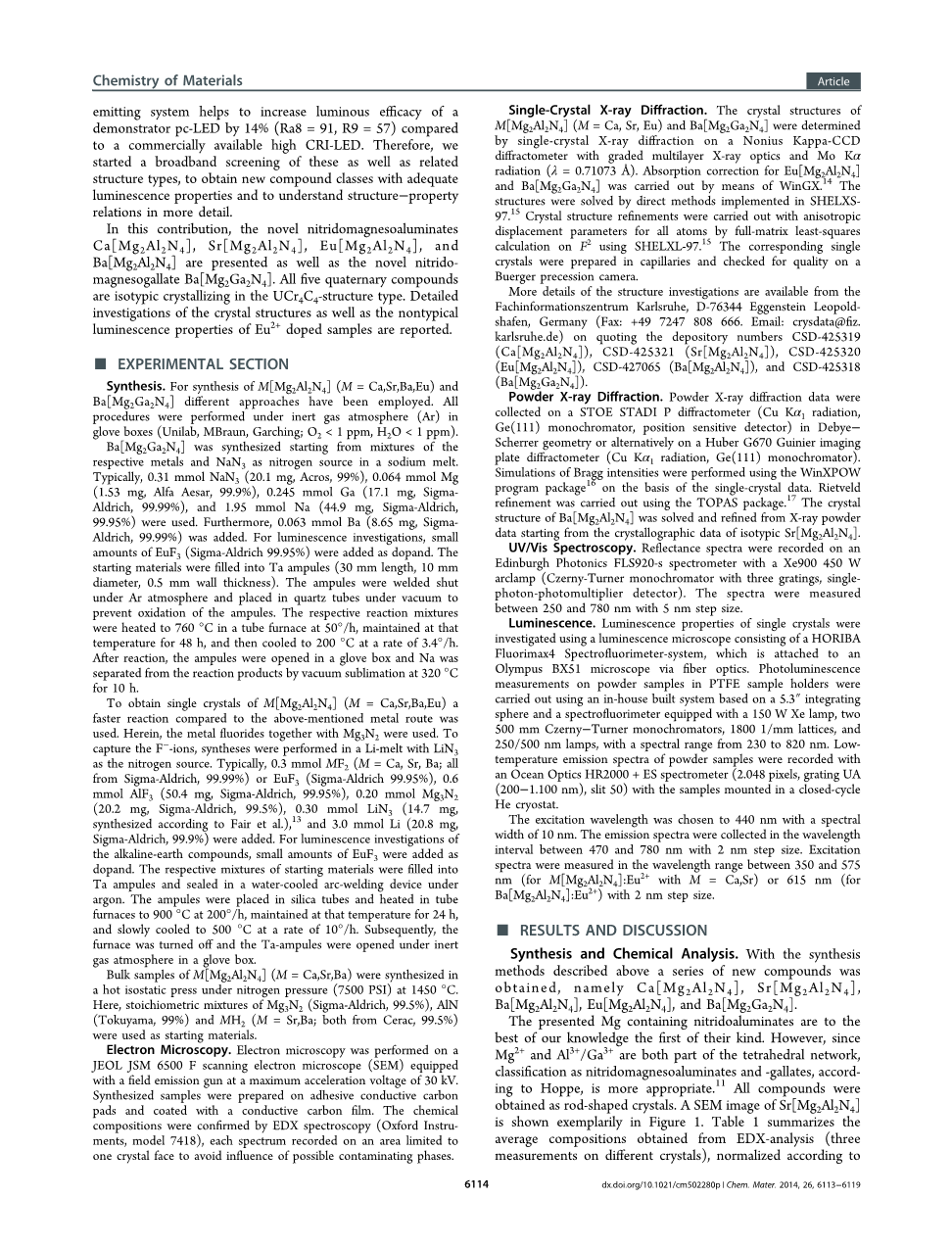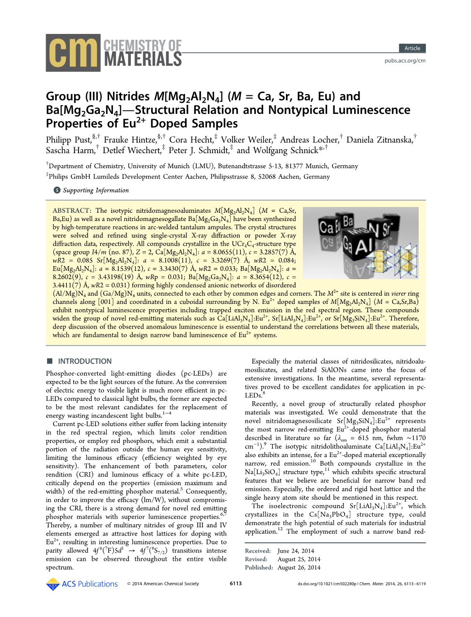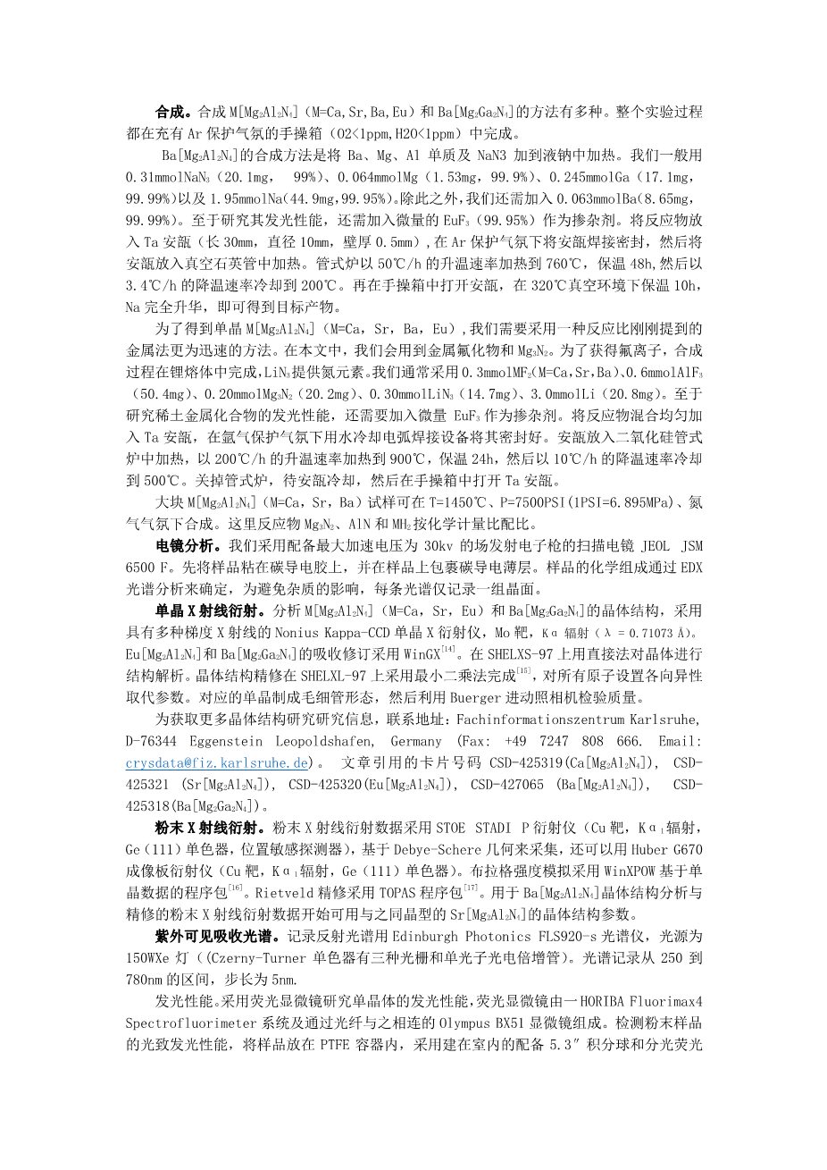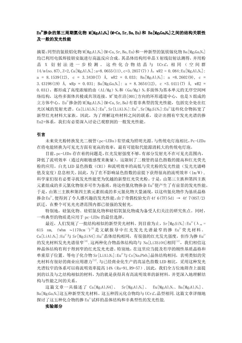 Eu2 掺杂的第三周期氮化物M[Mg2A12N4] (M=Ca, Sr, Ba, Eu)和Ba [Mg2Ga2N4]之间的结构关联性及一般的发光性能外文翻译资料