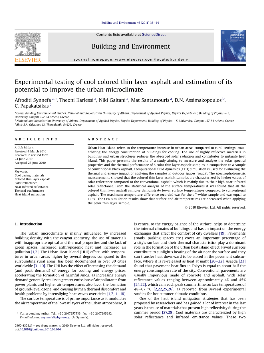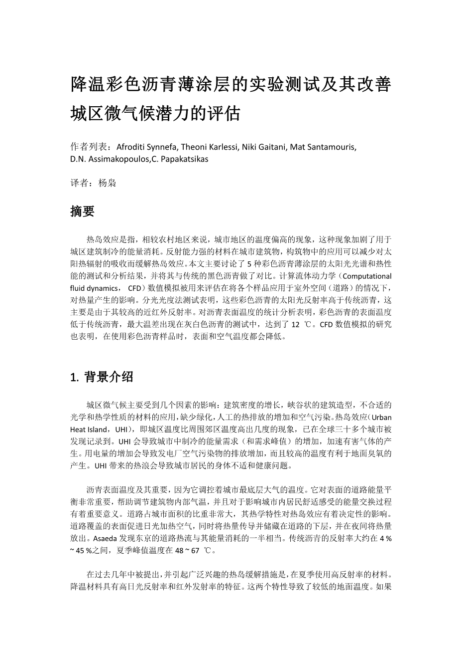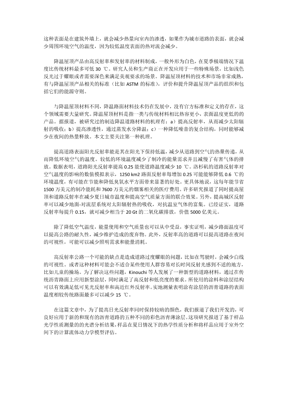 降温彩色沥青薄涂层的实验测试及其改善城区微气候潜力的评估外文翻译资料