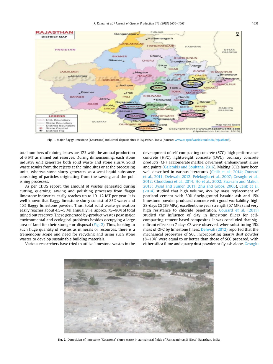 拉贾斯坦邦拥有巨大的资源,包括大理石,砂岩,花岗岩,旗杆石灰石和石板等五种主要品种。 拉贾斯坦邦丰富地拥有沉积型岩石来源的旗崖低级石灰石(俗称Kota-stone),它由高硅含量的碳酸钙组成。 哥打和贾拉瓦尔地区占印度石油产量的70%。 Kotastone矿床分布在150平方公里范围内(图1)。 统计数据显示,采矿租赁总数为123个,年采矿量为6吨,为采矿储量。 在定尺寸期间,每个石材工业单位都会生成固体废物和石浆。 固体废弃物来自矿场或加工单元的废弃物,而石浆则是由锯切和抛光过程产生的颗粒组成的半液态物质。