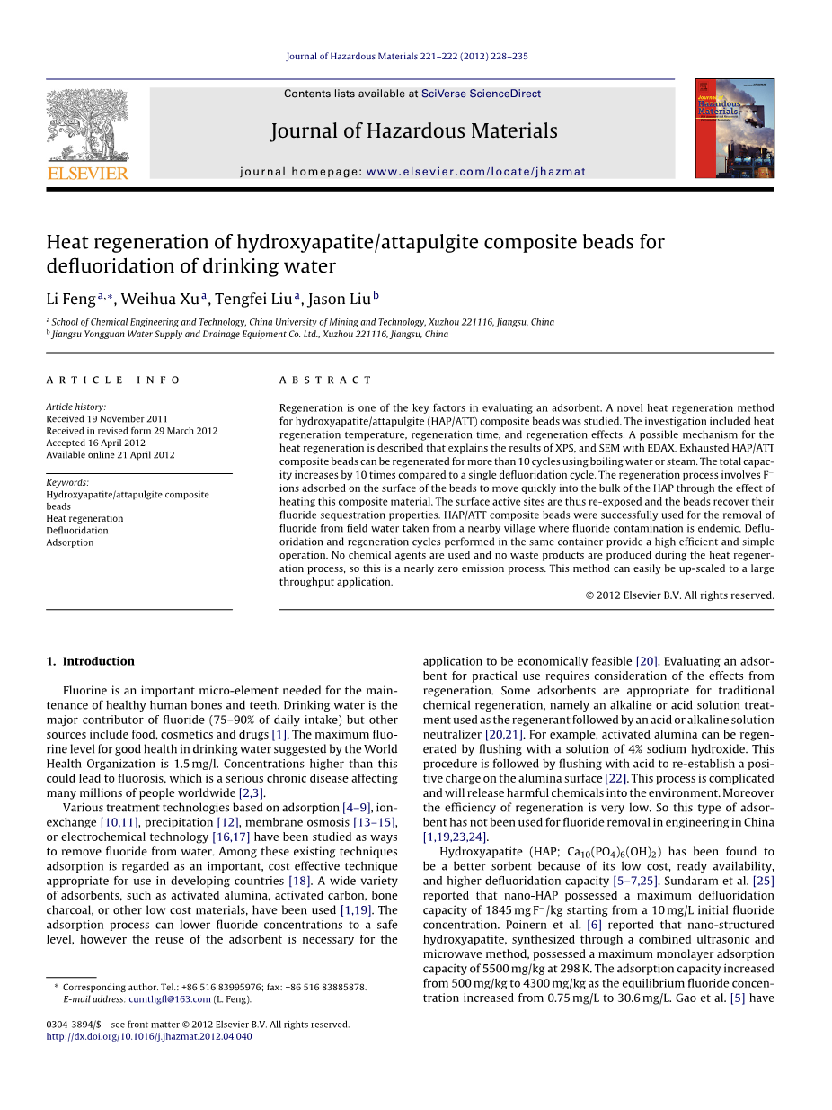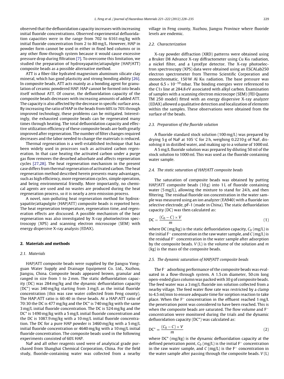 用于饮用水除氟的羟基磷灰石/凹凸棒土复合颗粒热再生方法外文翻译资料