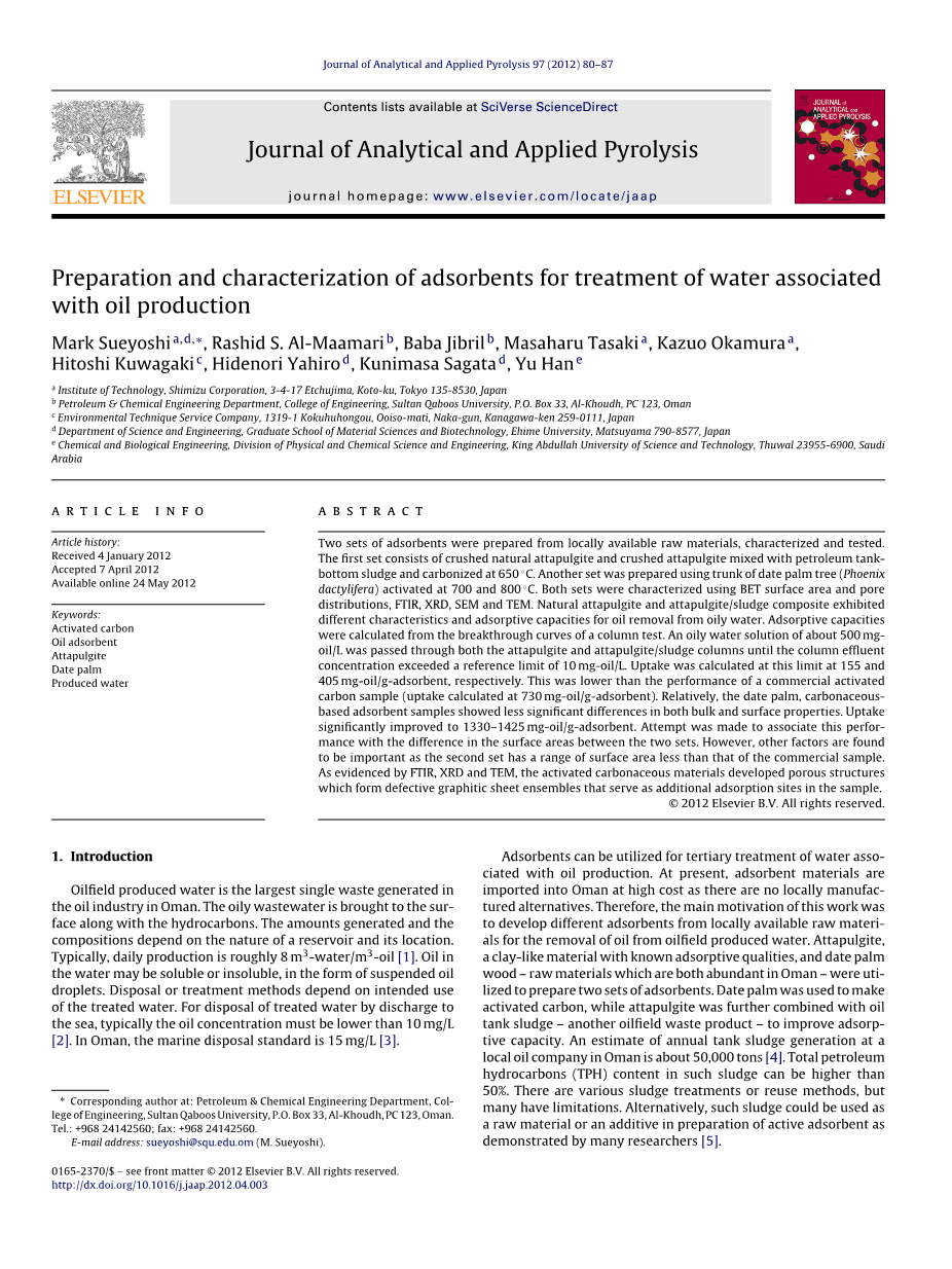 Mark Sueyoshi a,d,lowast;, Rashid S. Al-Maamari b, Baba Jibril b, Masaharu Tasaki a, Kazuo Okamura a,