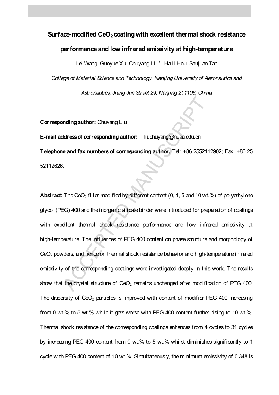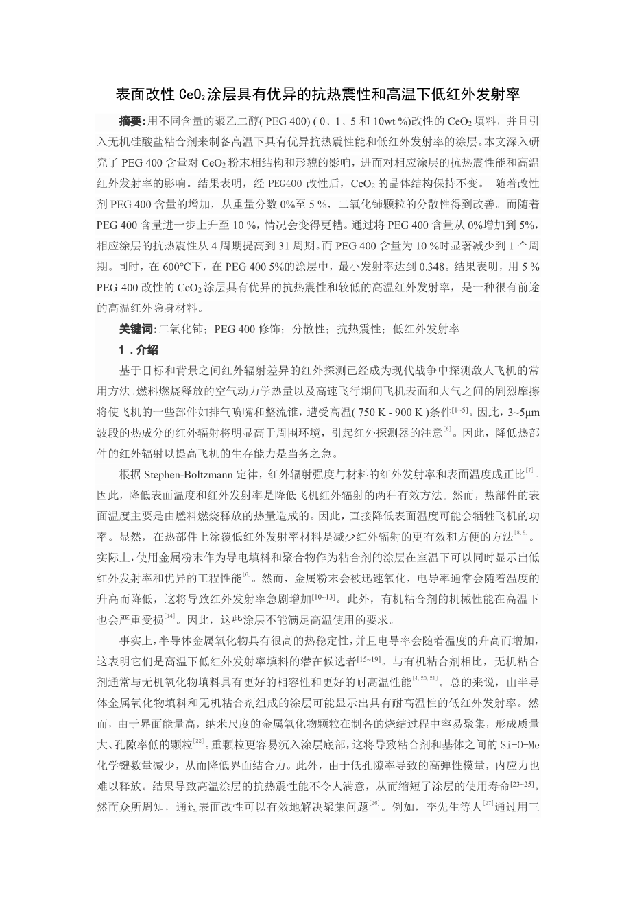 表面改性CeO2涂层具有优异的抗热震性和高温下低红外发射率外文翻译资料