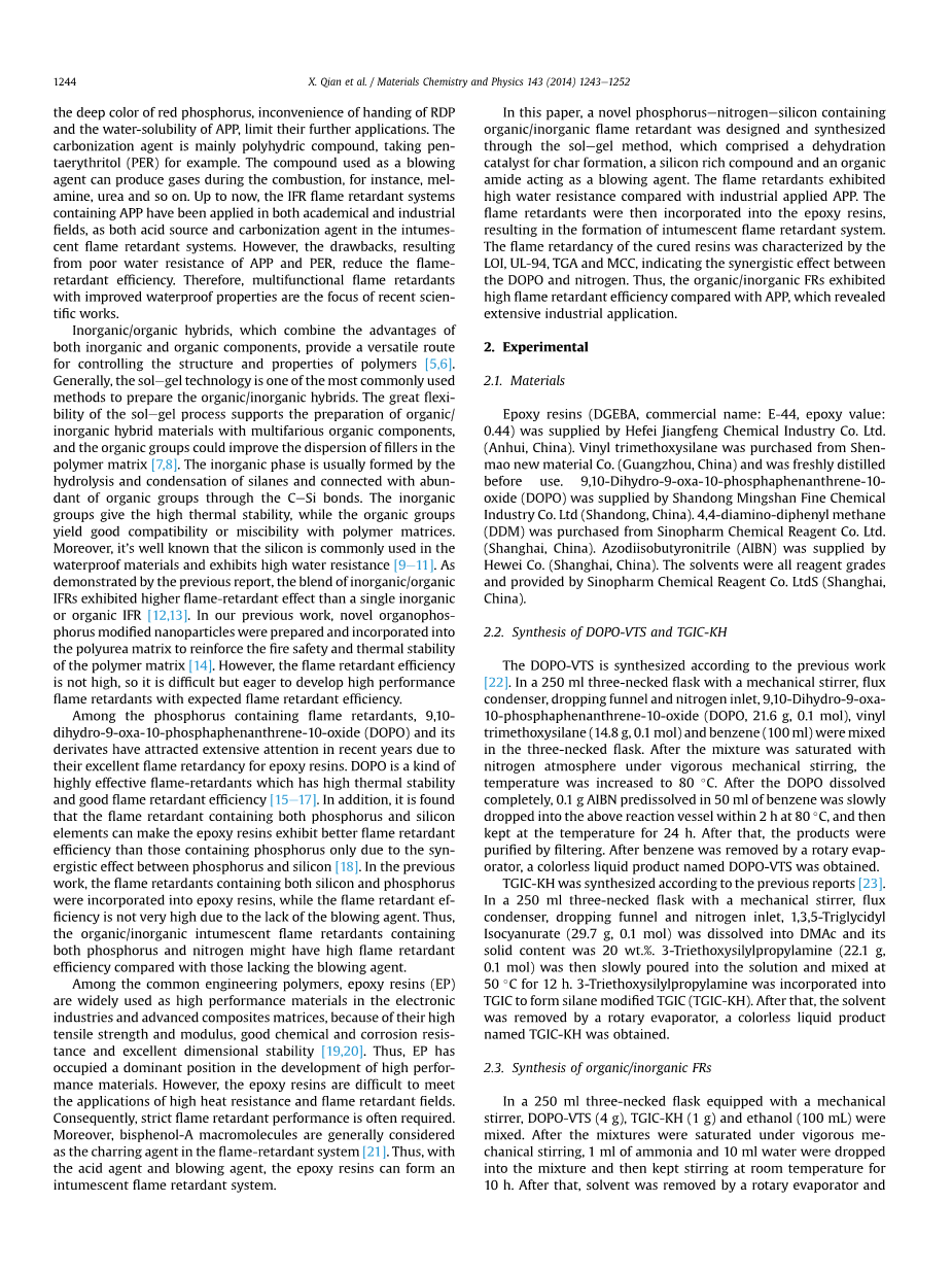 含磷、氮、硅的有机和无机复合阻燃剂的制备以及作为一种新型膨胀阻燃系统在环氧树脂阻燃中的表现