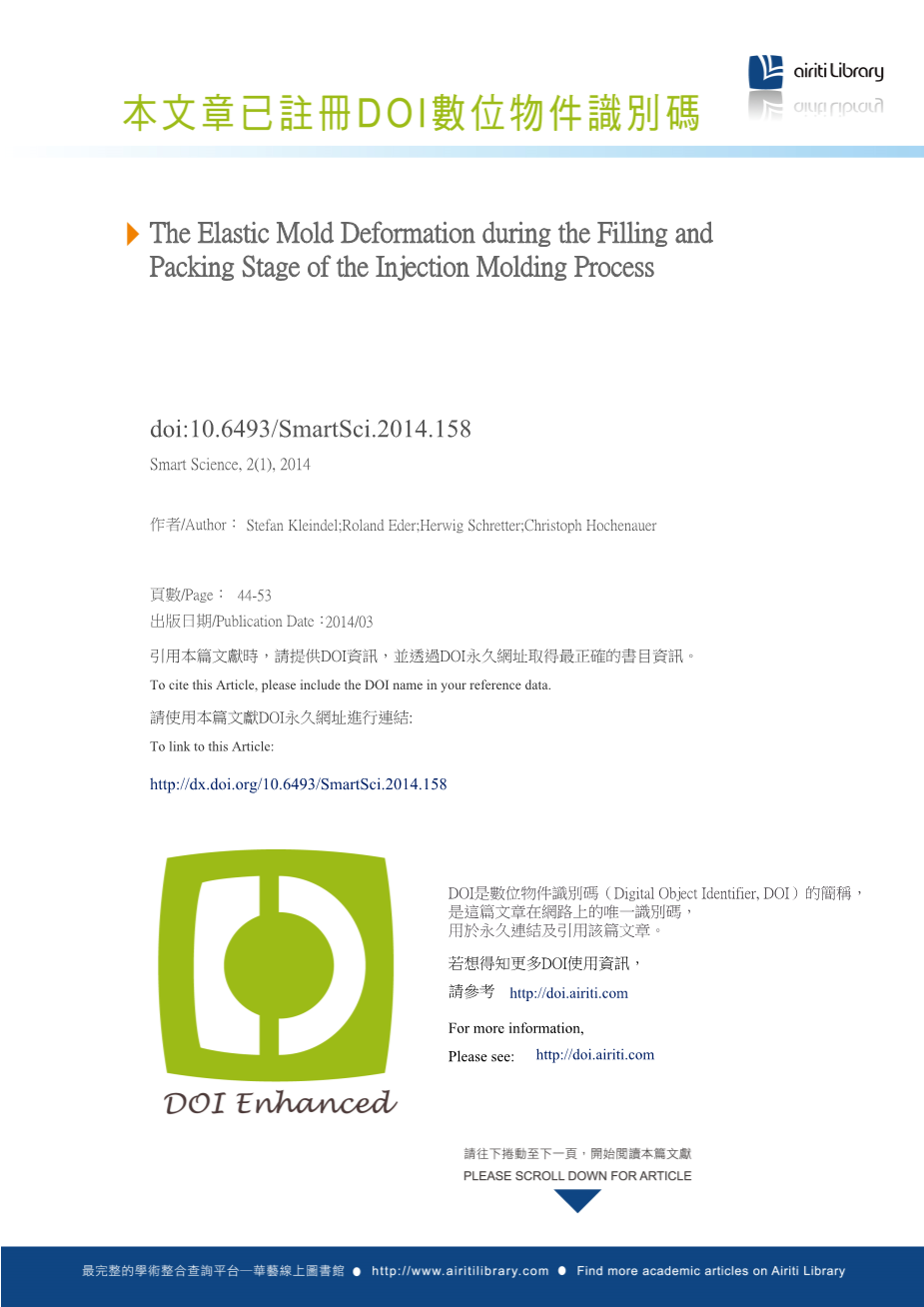 注塑是用于大规模生产和准备使用塑料部件具有复杂的几何形状的最重要的制造工艺中的一个。近年来过程模拟方法获得了越来越多的重要性和被当今广泛用于模拟塑料部件的填充行为,由于残余应力来预测部分和模具的温度分布,并获得在模制零件的最终偏转。然而,由于数学模型的假设和简化是真正的物理系统的一个良好近似模拟结果仅只要有效。这些假设是刚性模具。在本文介绍的案例研究将表明,这种简化并非总是如此,即使是看似生硬的模具可能会导致错误的仿真结果。