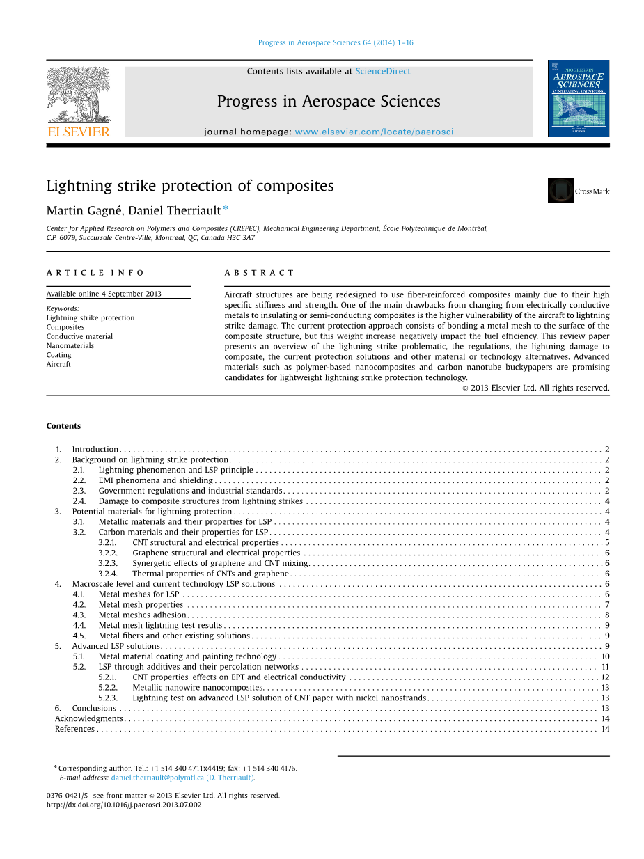 关键词:雷击保护;复合材料;导电材料;纳米材料;涂层;飞机