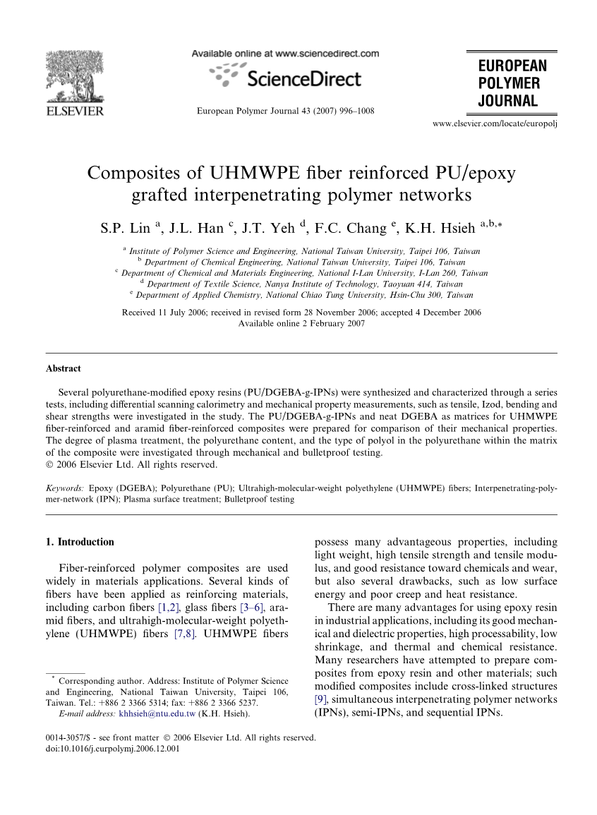 超高分子量聚乙烯纤维增强聚氨酯/接枝环氧树脂互穿聚合物网络复合材料外文翻译资料