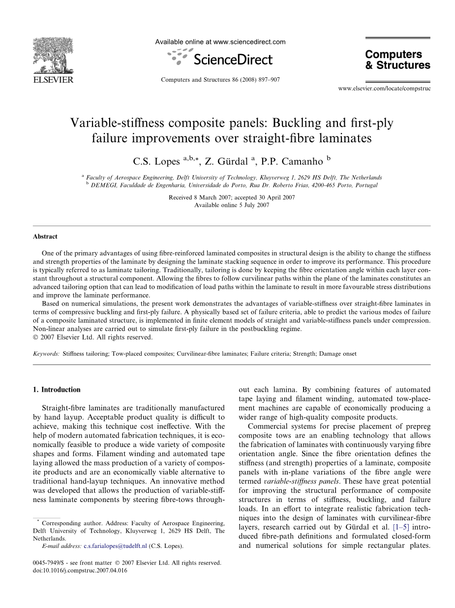 基于数值模拟,本工作证明了在直纤维层压可变刚度就压缩屈曲和第一层失效而言的优点。基于物理的一套失效准则,在压缩下的直链和可变刚性板有限元模型中实现,也能够预测故障的各种模式得复合层压结构。非线性分析进行了模拟第一层失效后屈曲制度。