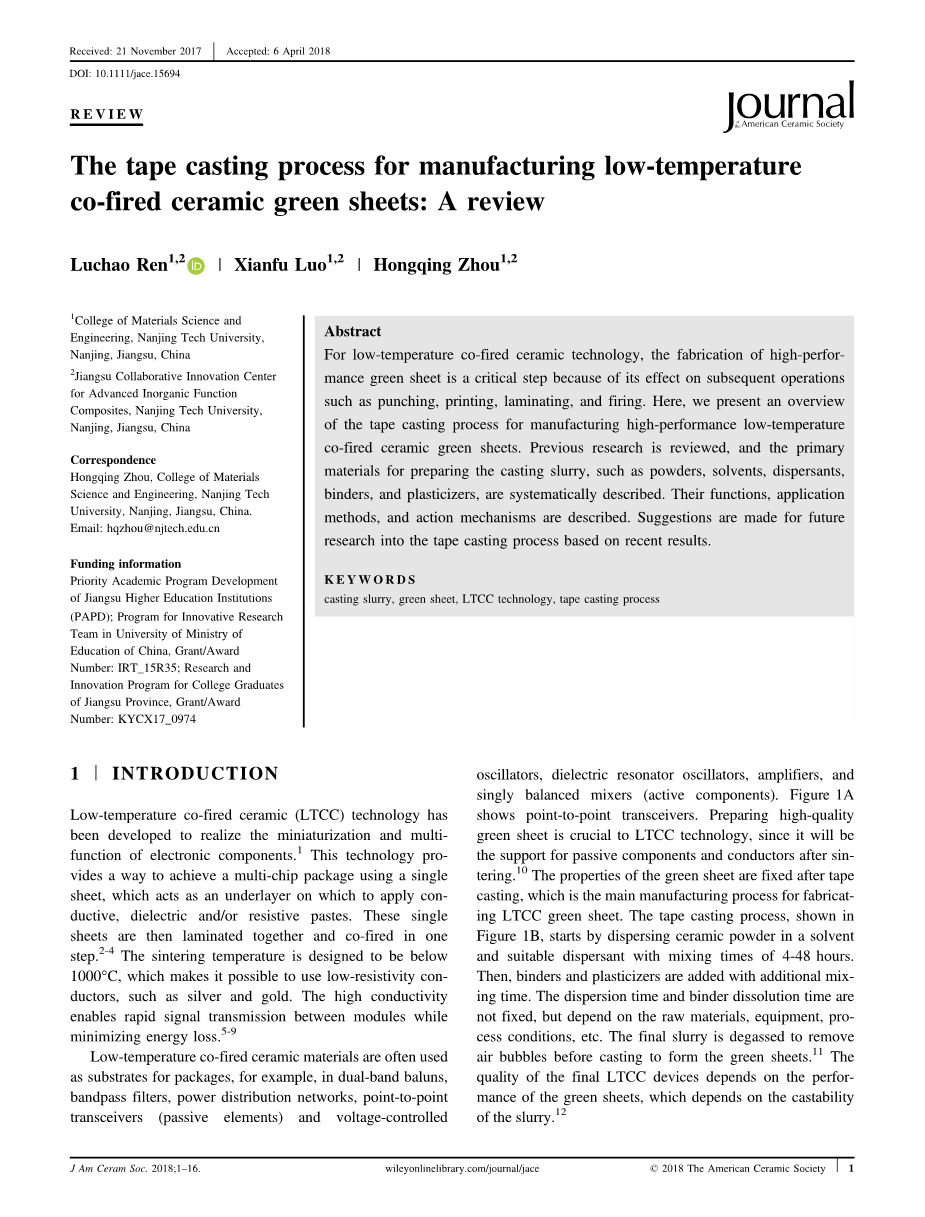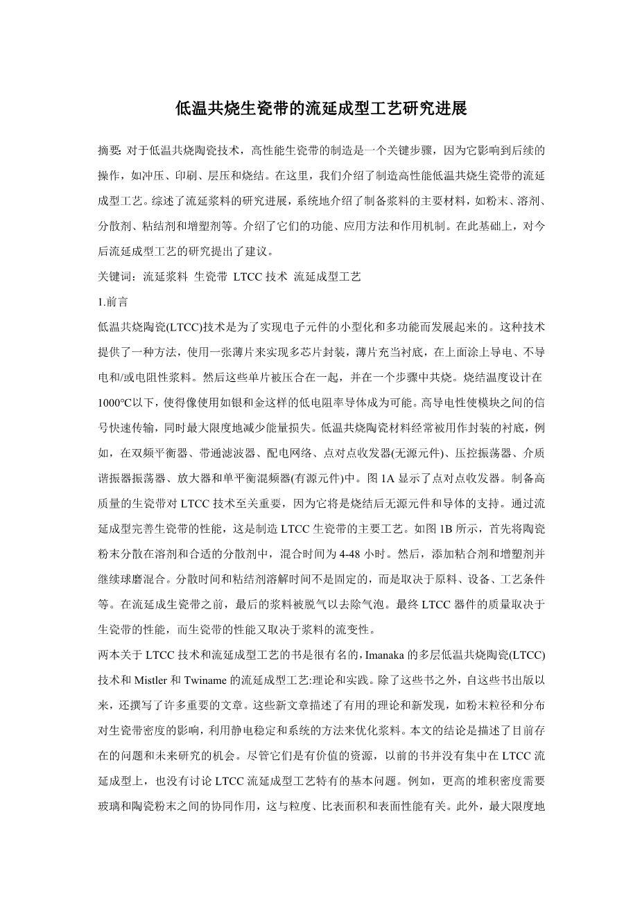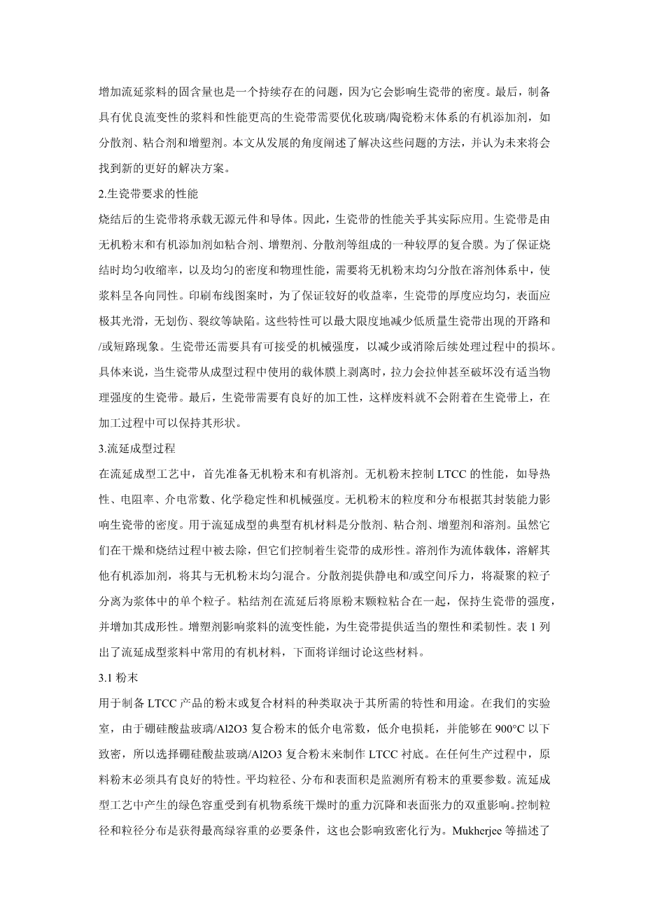 低温共烧生瓷带的流延成型工艺研究进展外文翻译资料