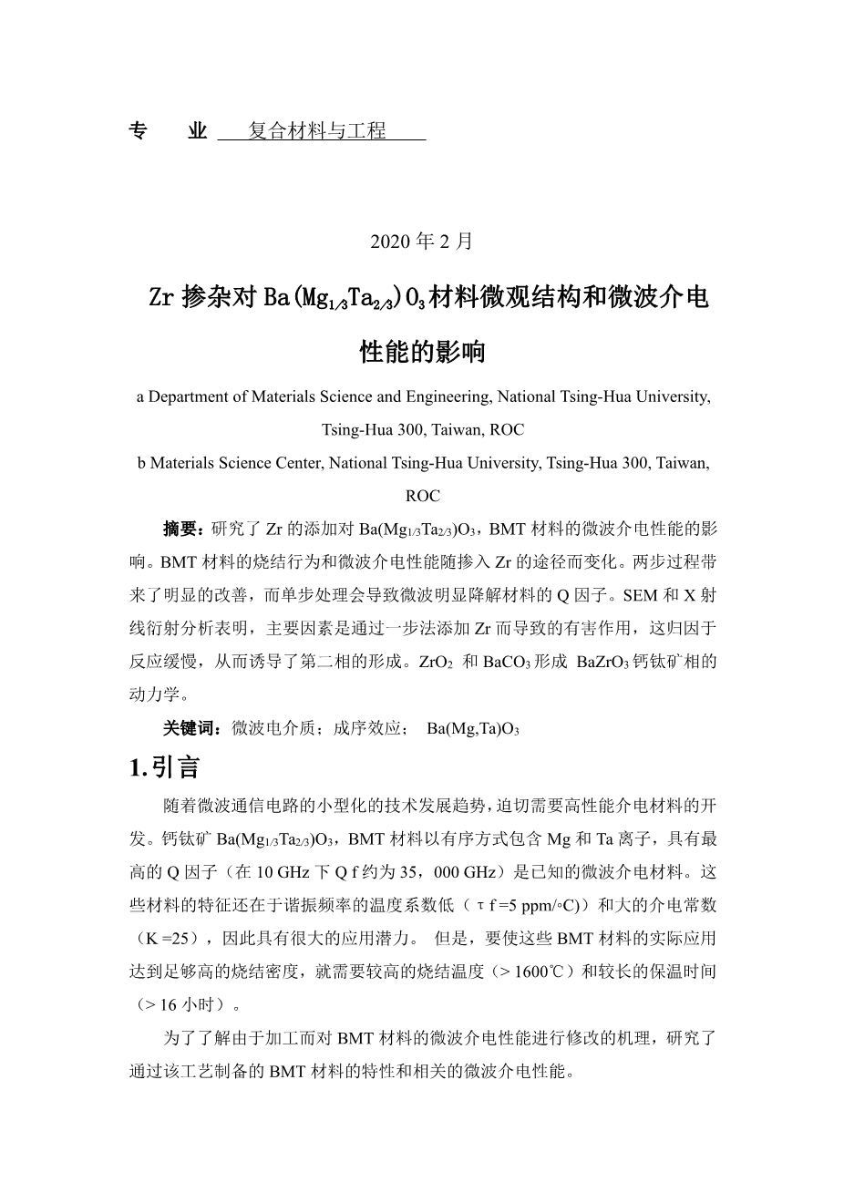 BMN系钙钛矿微波介质陶瓷的制备与性能研究外文翻译资料