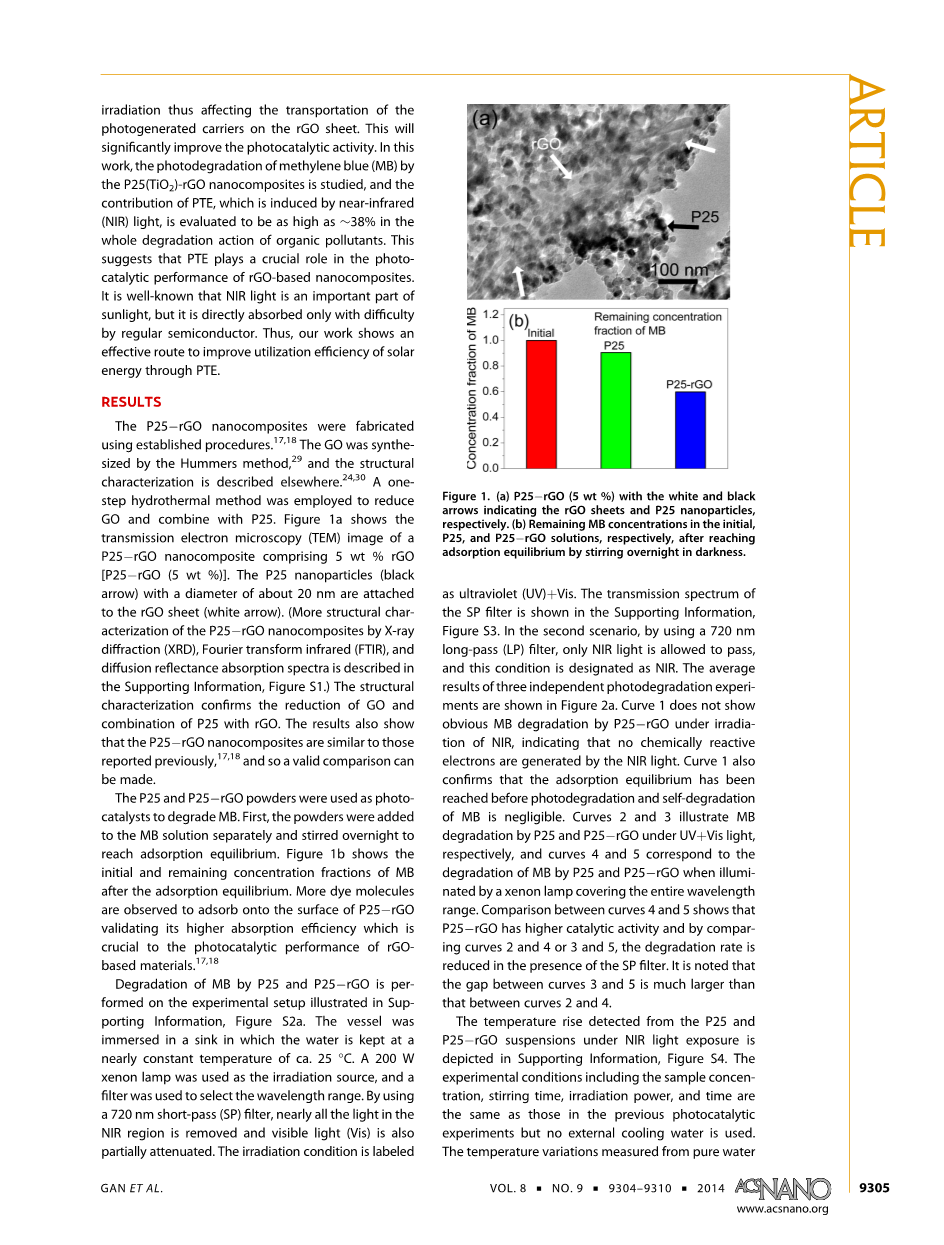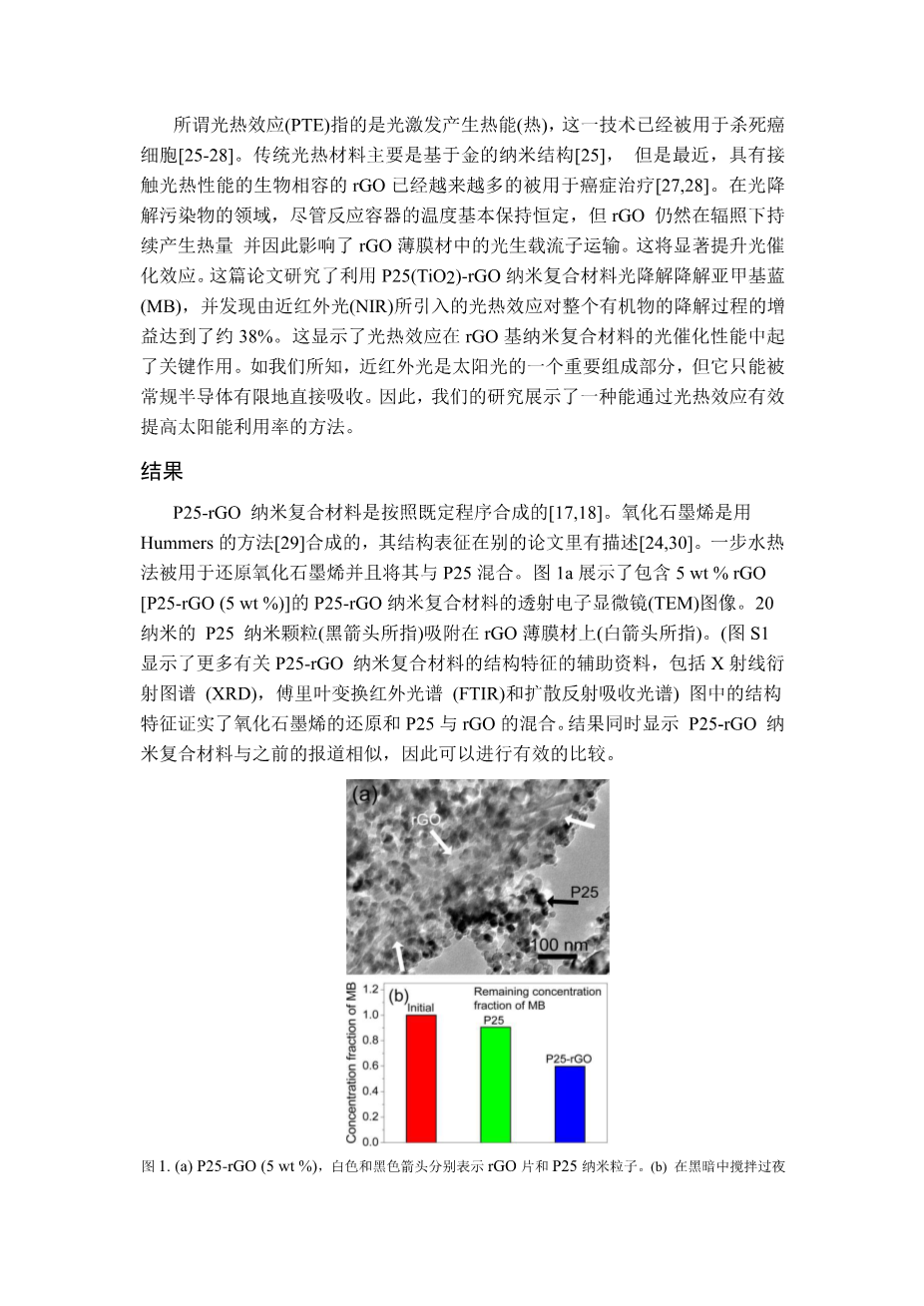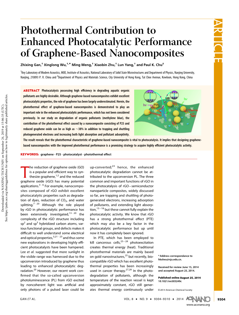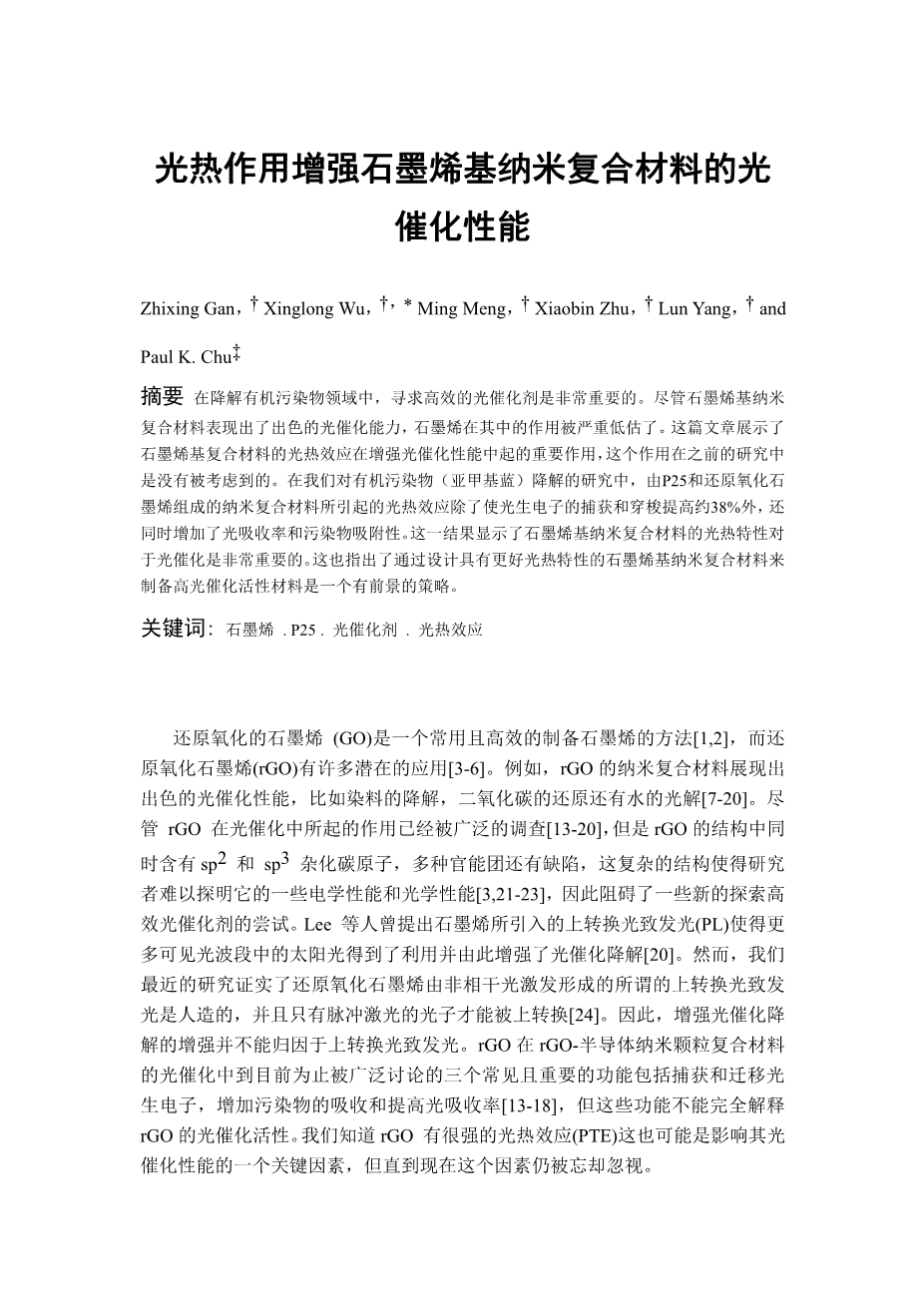 光热作用增强石墨烯基纳米复合材料的光 催化性能外文翻译资料