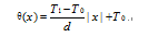 2. 使用线性函数法来描述纤维铺放轨迹。在层合板中心点位置建立直角坐标系。首先定义纤维参考路径曲线,该曲线过原点并关于原点对称,设在原点处纤维铺放角度为t0,横坐标为d处(d为层合板边长的一半)的纤维铺放角度为t1,与x轴的夹角