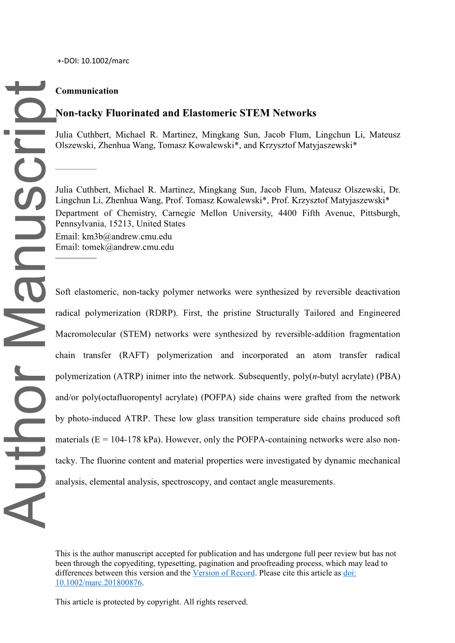 *电邮:Krzysztof Matyjaszewski(K.M。)