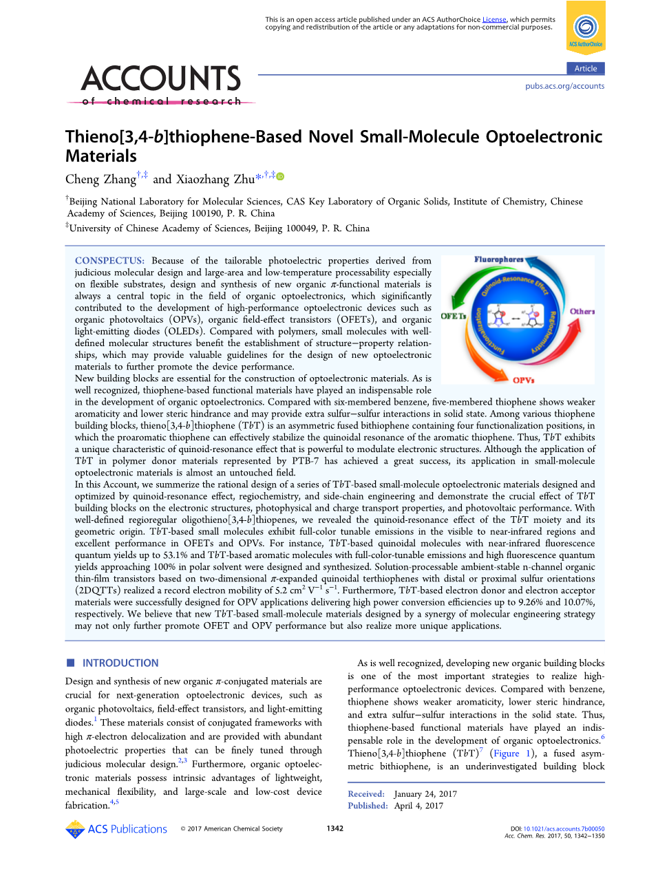 开发新的有机组成部分是实现高性能光电子器件的最重要的战略之一是公认的。与苯相比,噻吩显示较弱的芳香性,较低的空间位阻,而在固态下具有额外硫 - 硫相互作用。因此,基于噻吩官能材料已在有机光电子的发展中发挥不可缺少的作用。