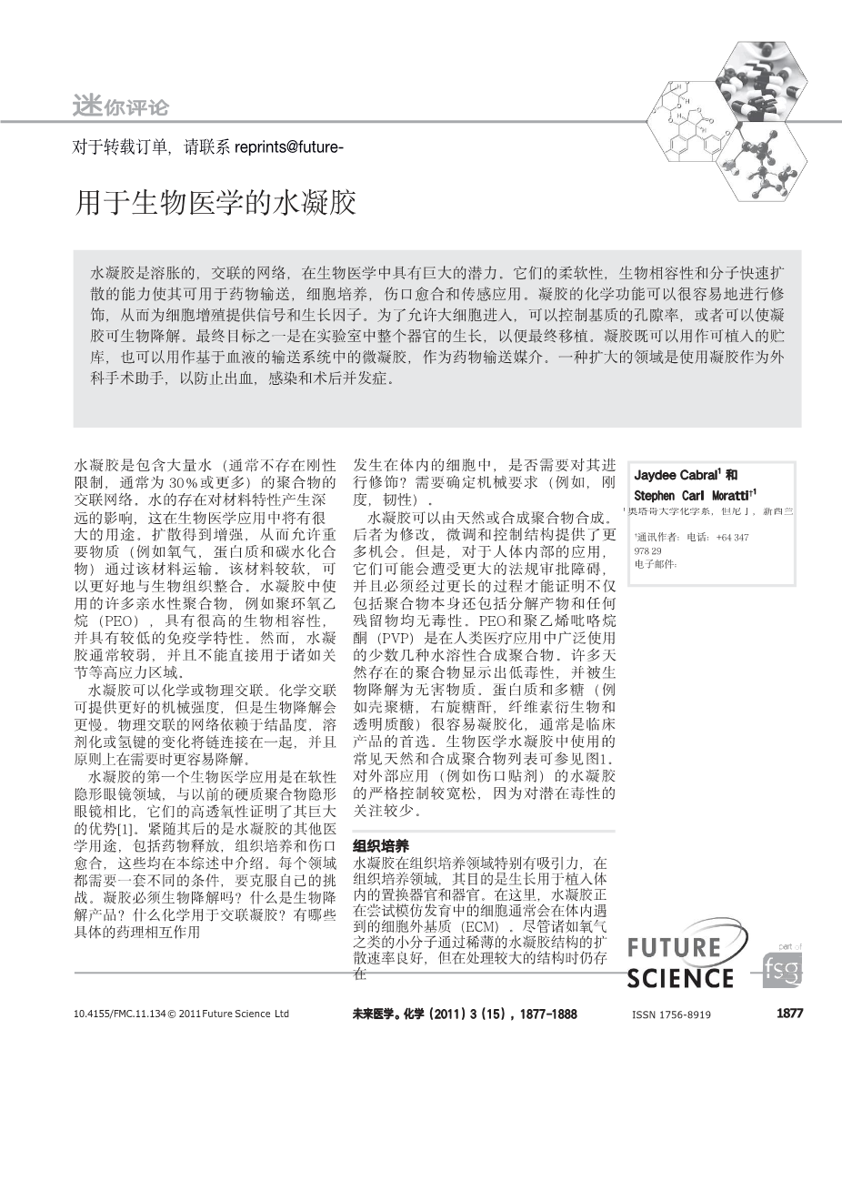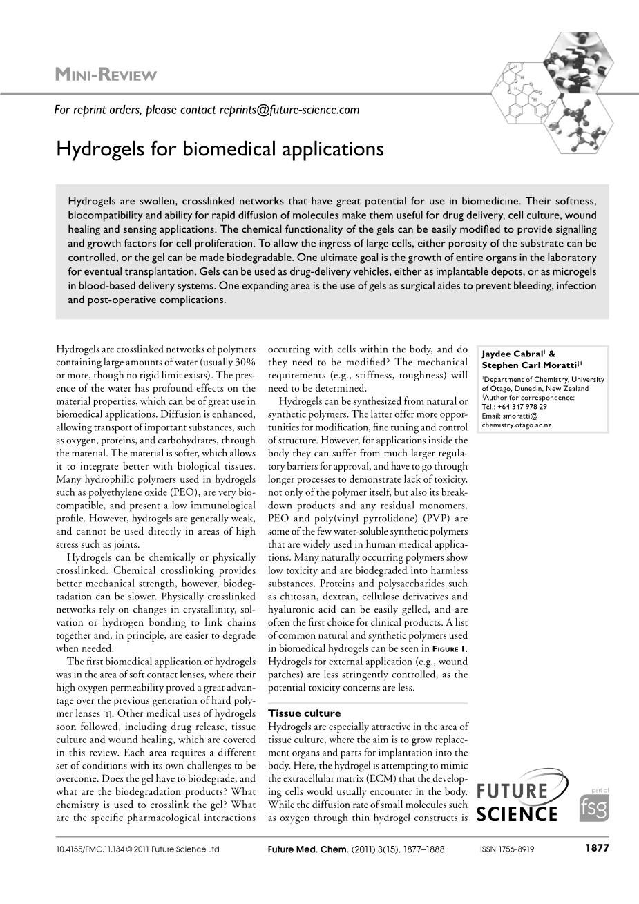 用于生物医学的水凝胶外文翻译资料