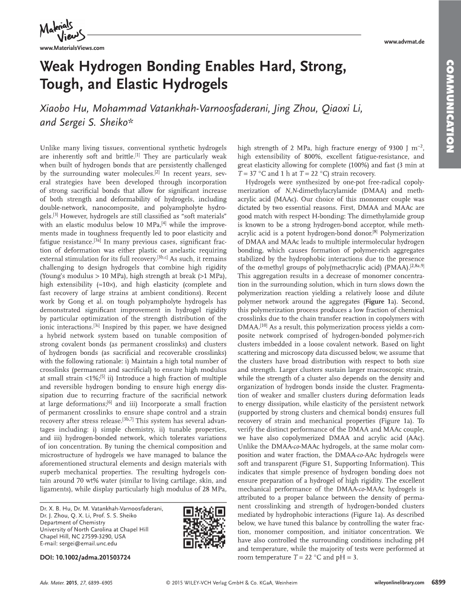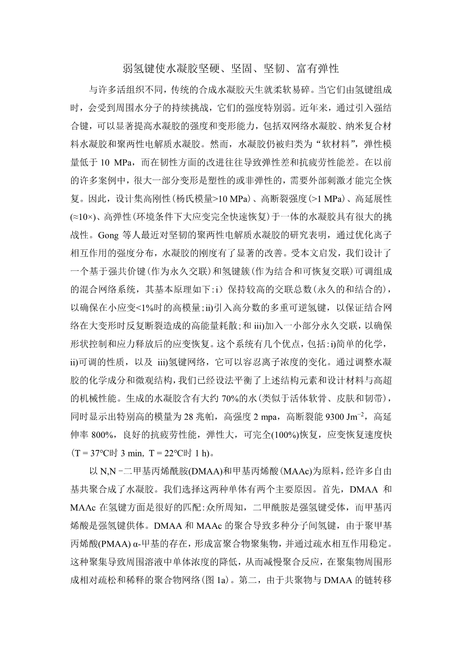 弱氢键使水凝胶坚硬、坚固、坚韧、富有弹性外文翻译资料