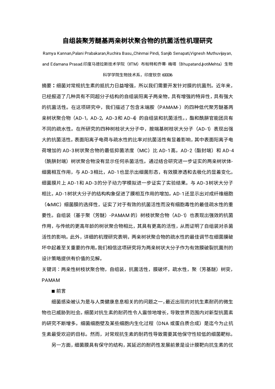 自组装聚芳醚基两亲树状聚合物的抗菌活性机理研究外文翻译资料