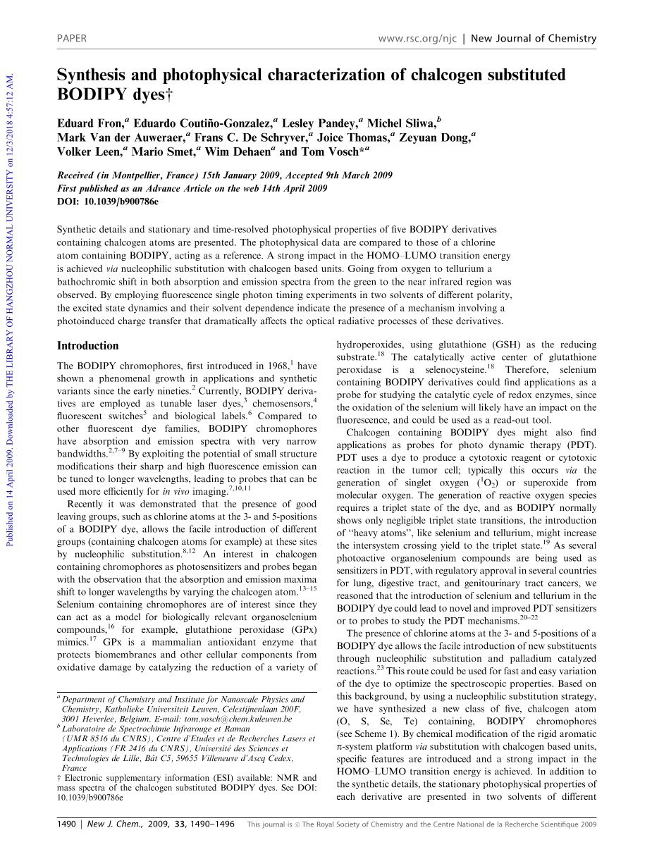 基于BODIPY荧光探针的合成及应用外文翻译资料