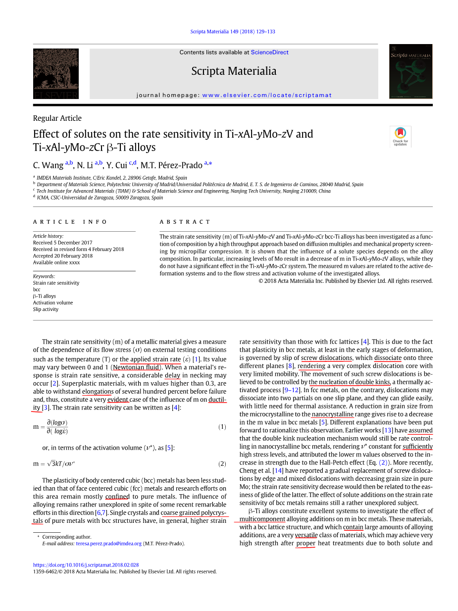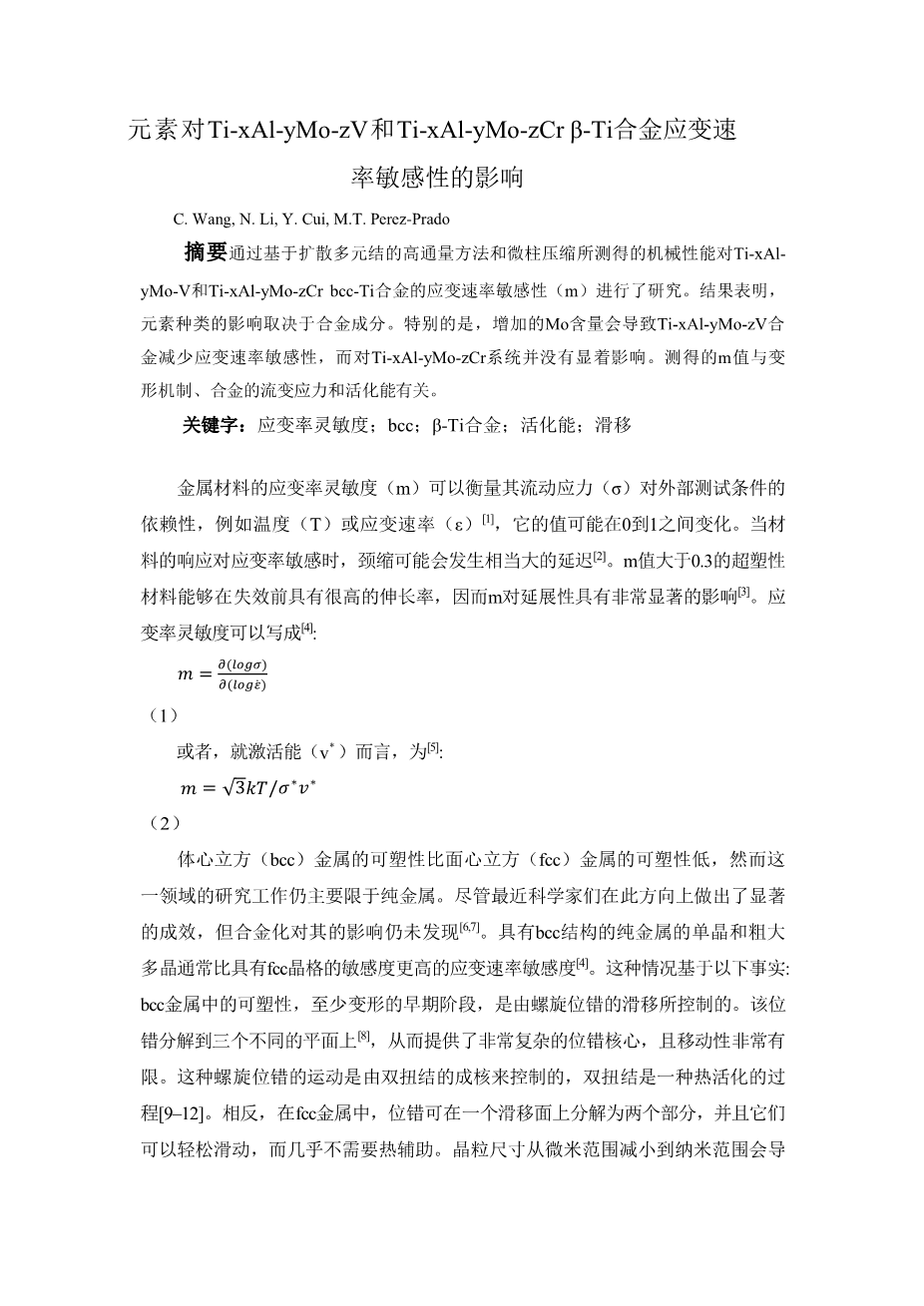 - 元素对Ti-xAl-yMo-zV和Ti-xAl-yMo-zCr β-Ti合金应变速 率敏感性的影响外文翻译资料