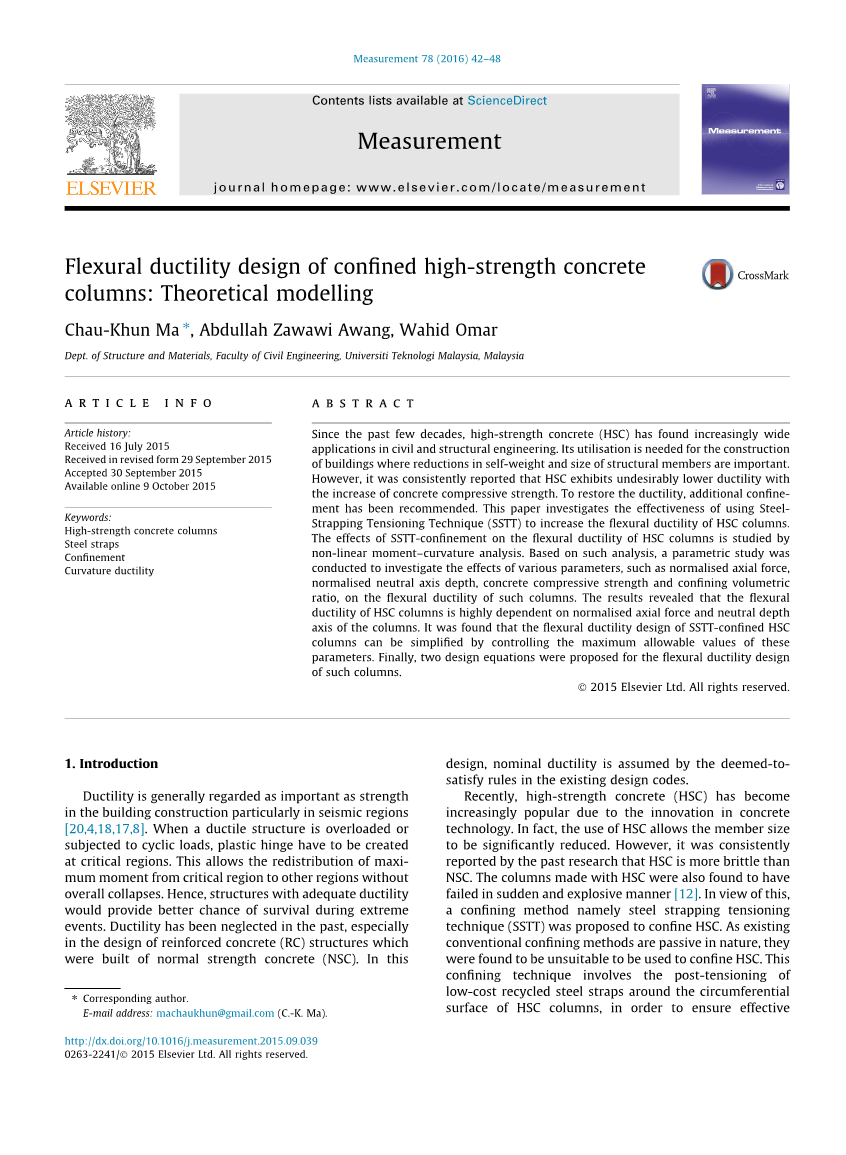 延展性在建筑施工中与强度一样重要,特别是在地震区[20,4,1817,8]。当韧性结构超载或承受循环负荷,塑性铰被应用在关键区域。这允许最大力矩从关键区域分配到其他区域,而不会造成材料损坏。因此,有足够延展性的材料能在极端条件下得到更好的应用。在过去,延展性一直被忽视,尤其是在普通强度混凝土(NSC)被设计建造钢筋混凝土(RC)结构。在这些设计中,现有的设计规则认为标准的延展性满足要求。