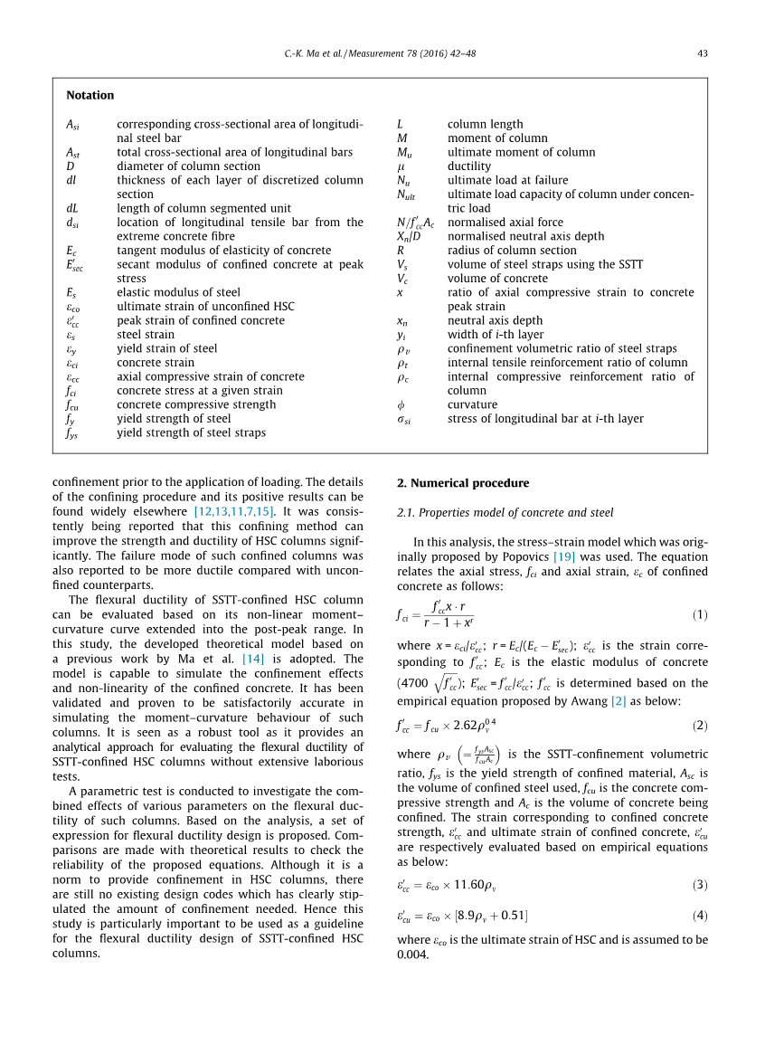 SSTT-限制HSC管桩的弯曲韧性可以根据其非线性弯矩曲率曲线延伸到后峰的范围上进行评估。在这项研究工作中,根据Ma等人先前的工作提出了理论模型。所用模型能够模拟管制混凝土的管制效果和非线性特性[14]。它已被验证并证明能够准确地模拟这些管桩的力矩 - 曲率行为。这种模型提供了一种评估SSTT-管制高强度混凝土管桩的弯曲延展性的方法,所以被认为是一种在无法进行更多实验的条件下的重要分析方法。