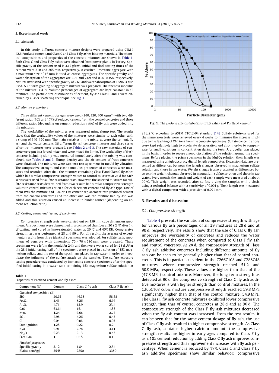 本研究的目的是调查具有级似的抗压强度值的含有C级和F级粉煤灰的混凝土搅拌物的抗硫酸盐侵蚀,尤其是硫酸镁的侵蚀。通过测量混凝土内部膨胀,重量改变来评估硫酸盐的侵蚀程度,其中所述混凝土标本已被15%硫酸镁侵蚀一年。