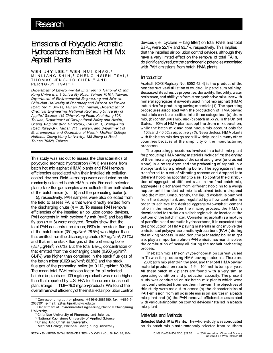从间歇式拌合器、预热炉和卸料槽中排放的PAH。 剩余内容已隐藏,支付完成后下载完整资料
