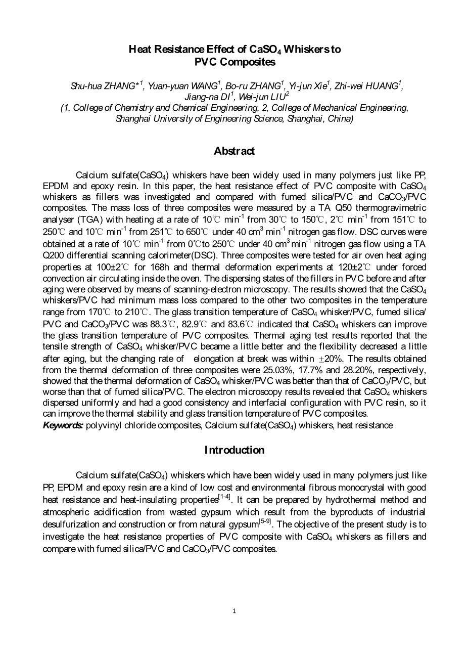 关键词:聚氯乙烯复合物,硫酸钙晶须,耐热性