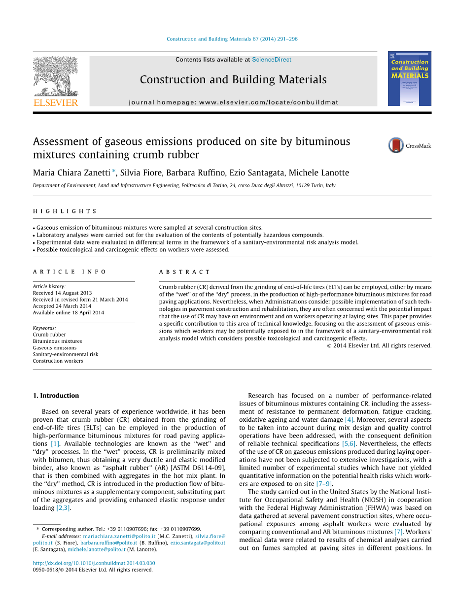 关键词:橡胶碎屑、沥青混合物、气体排放、环境-卫生风险、施工工人