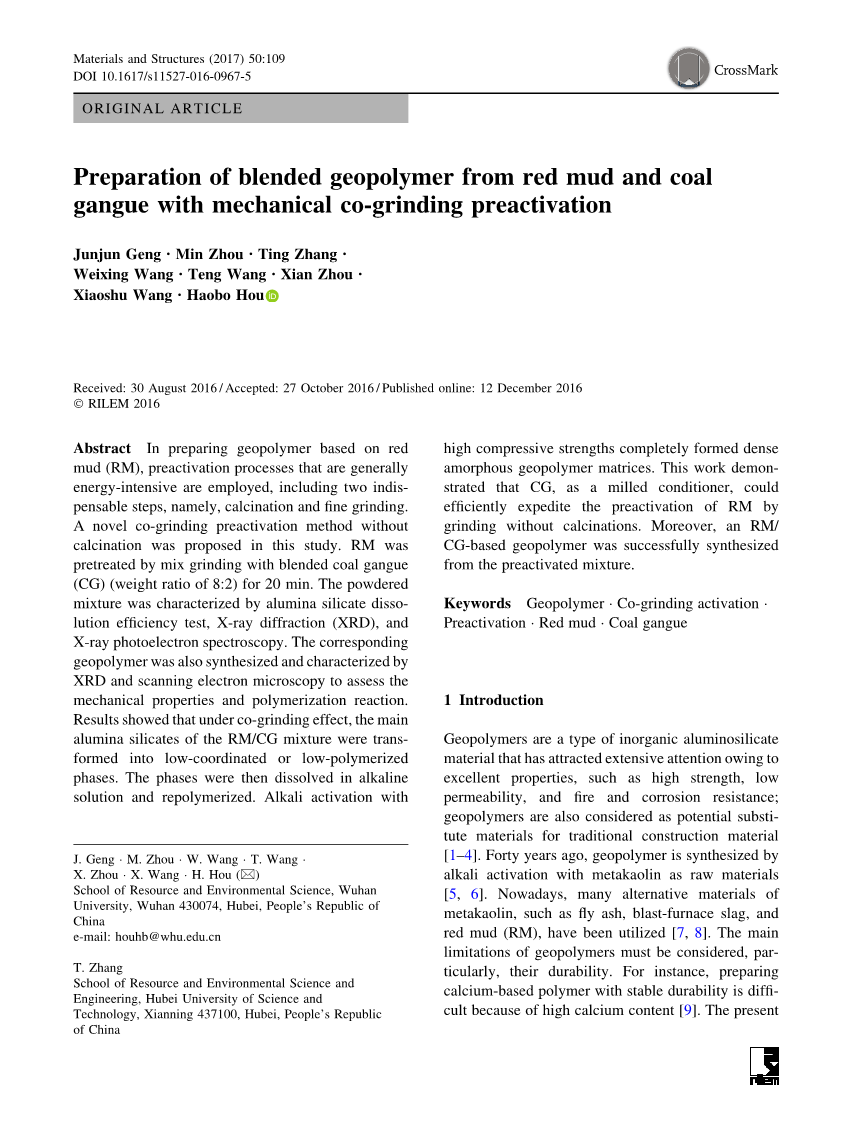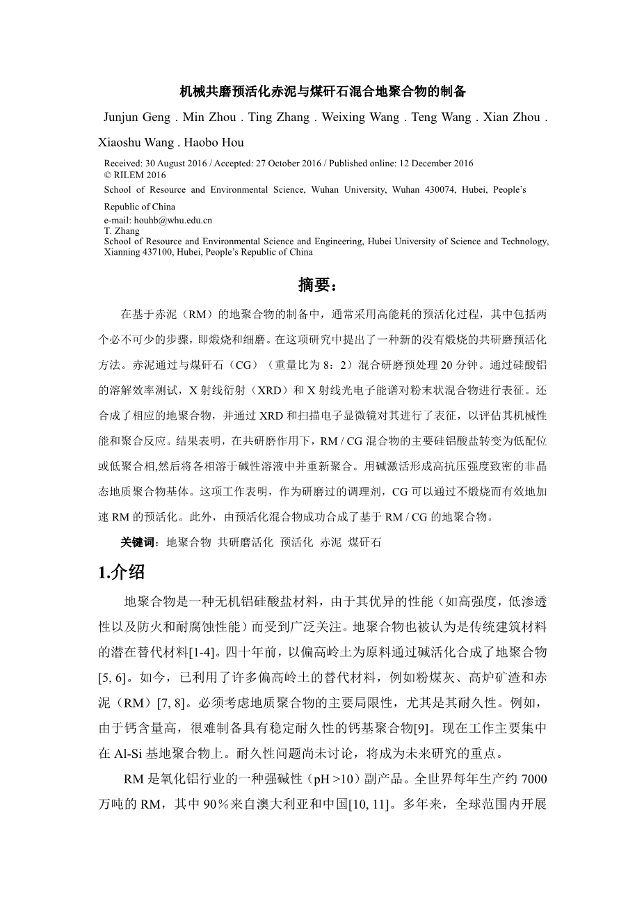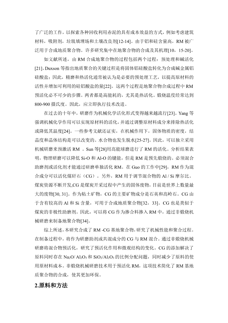 Na基激发剂对赤泥-煤矸石基胶凝材料的性能影响外文翻译资料
