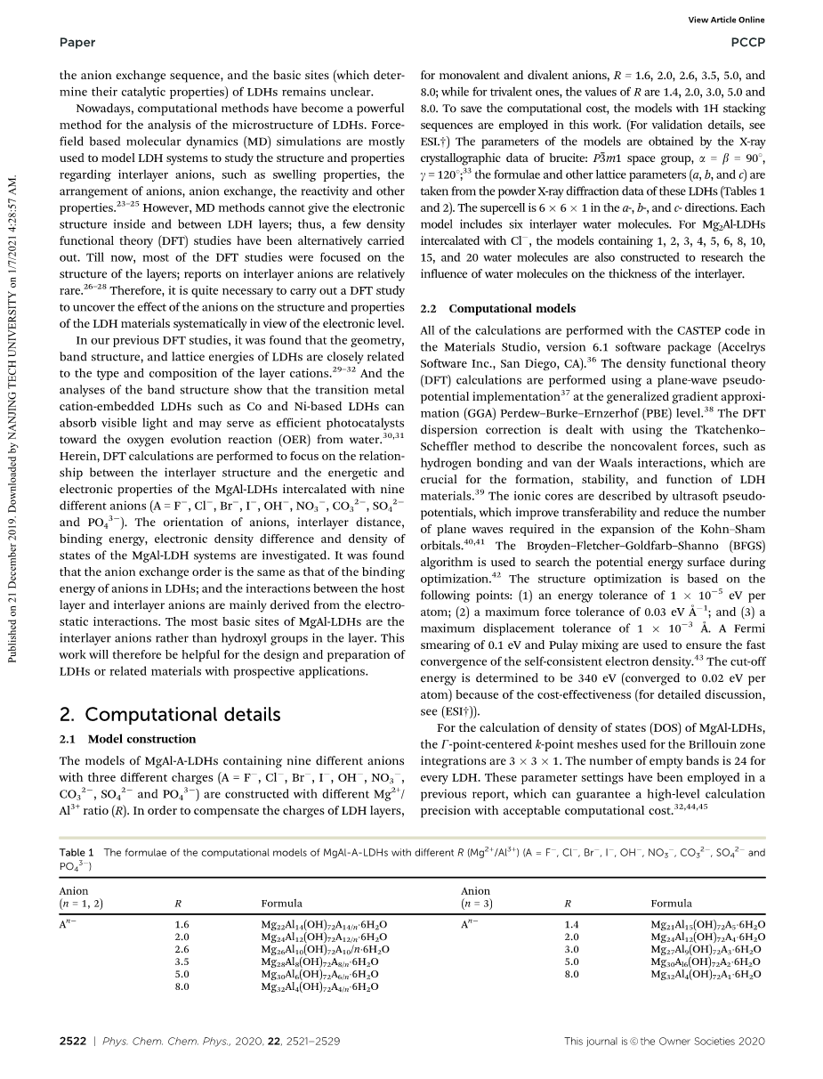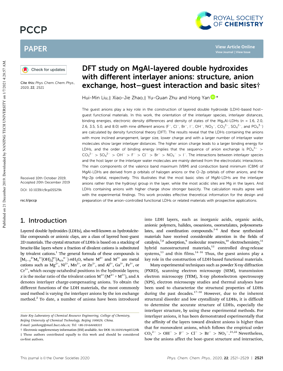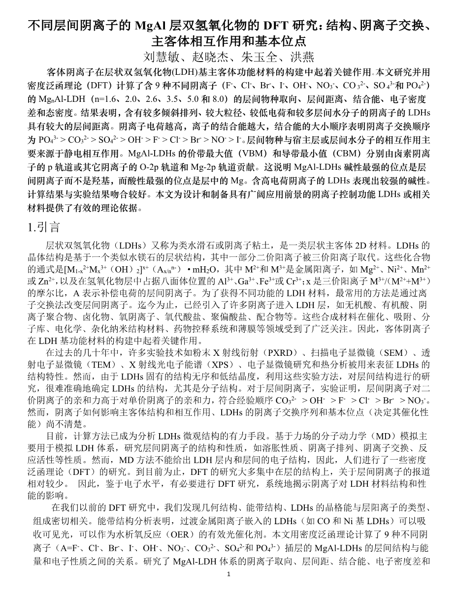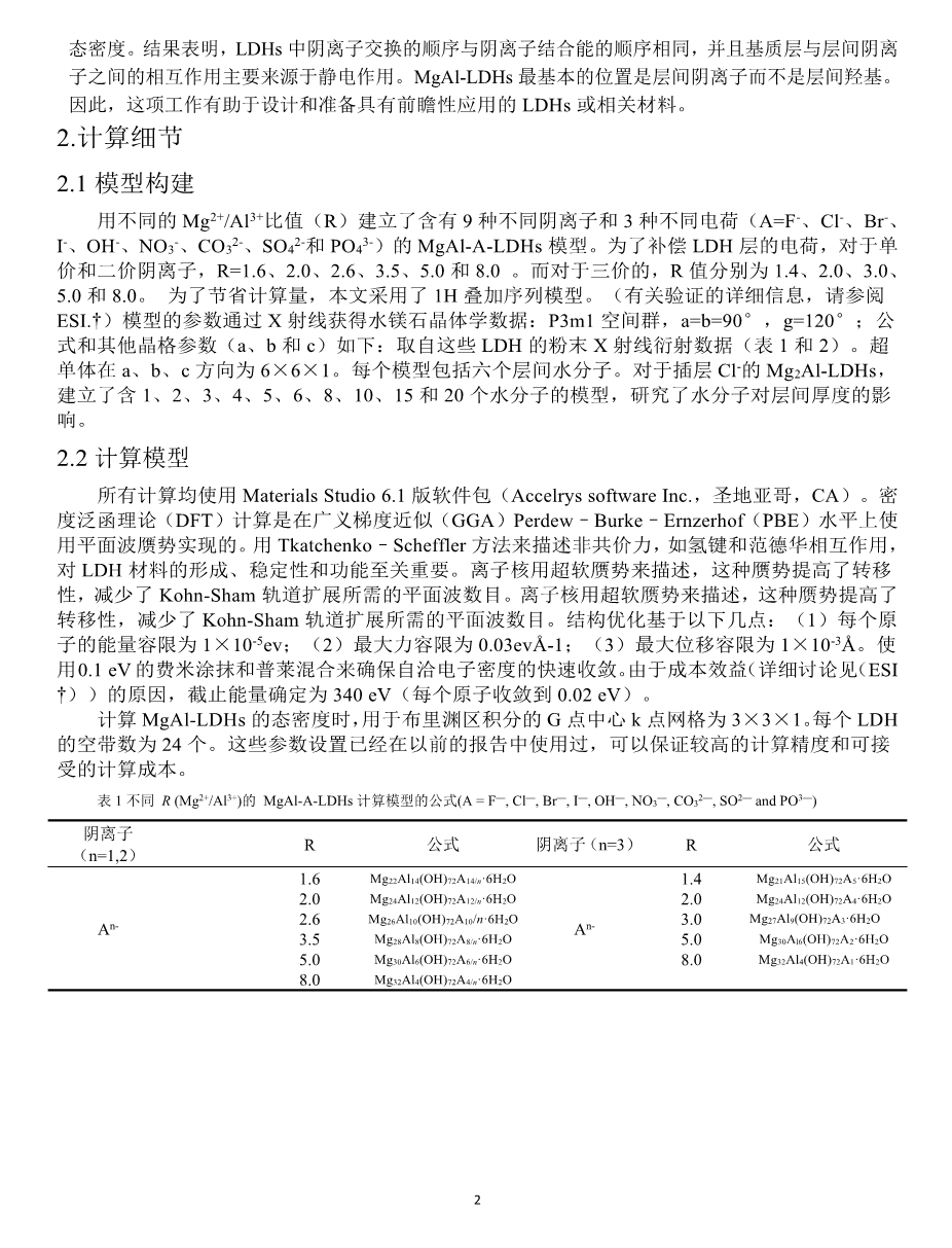 不同层间阴离子的MgAl层双氢氧化物的DFT研究:结构、阴离子交换、 主客体相互作用和基本位点外文翻译资料
