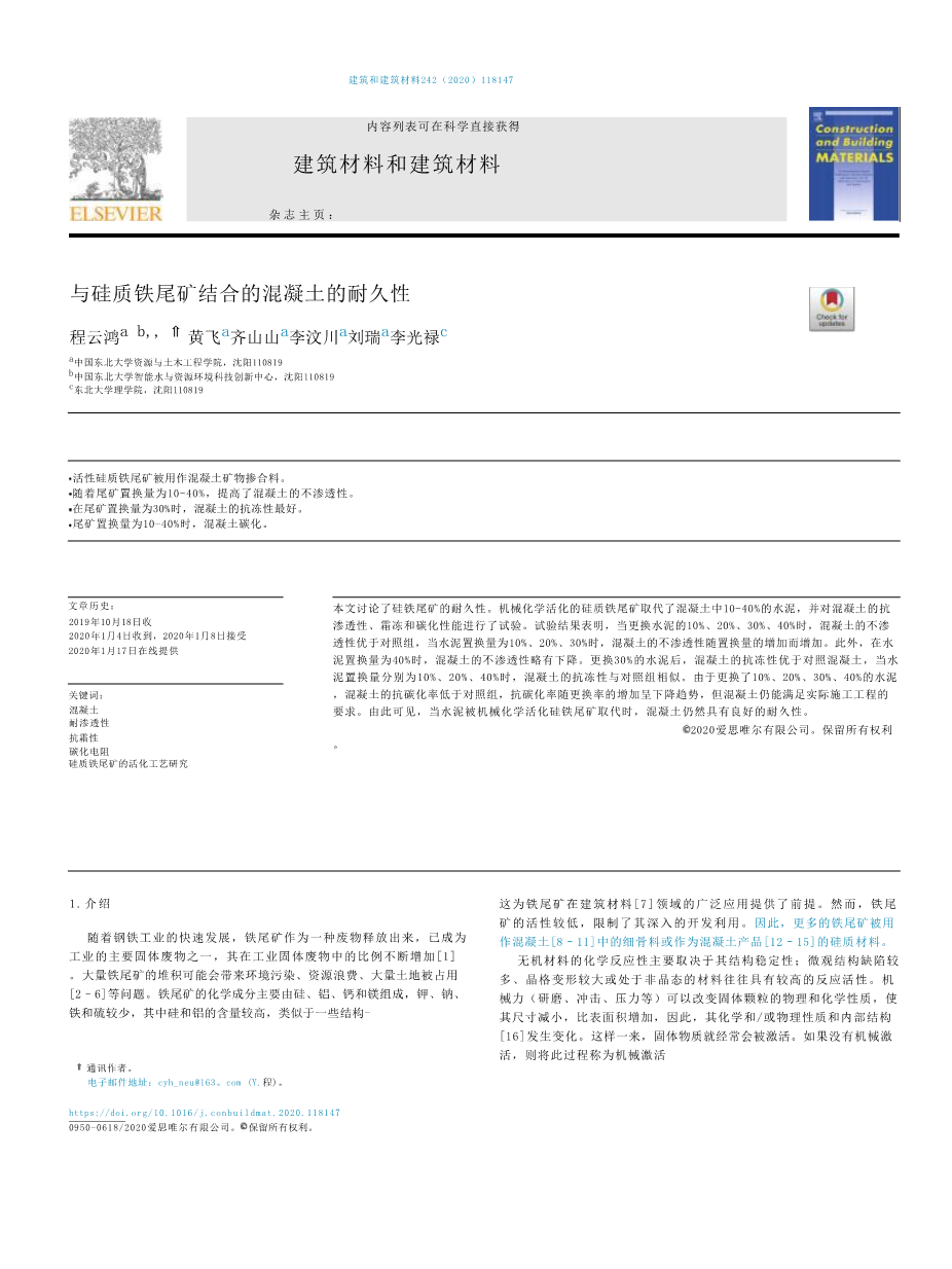 - 与硅质铁尾矿结合的混凝土的耐久性外文翻译资料